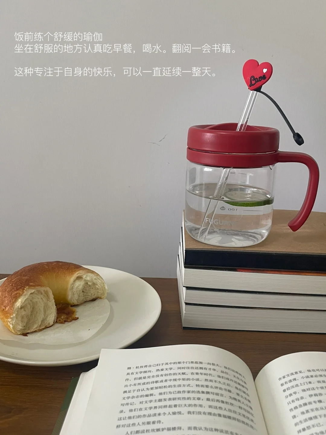 饭前练个舒缓的瑜伽,坐在舒服的地方认真吃早餐,喝水,翻阅一会书籍。这种专注于自身的快乐,可以一直延续一整天。