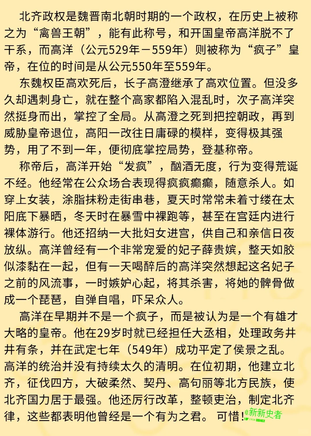 疯子皇帝 疯子皇帝高洋 禽兽王朝 高洋皇帝 历史那些事儿 皇帝 历史