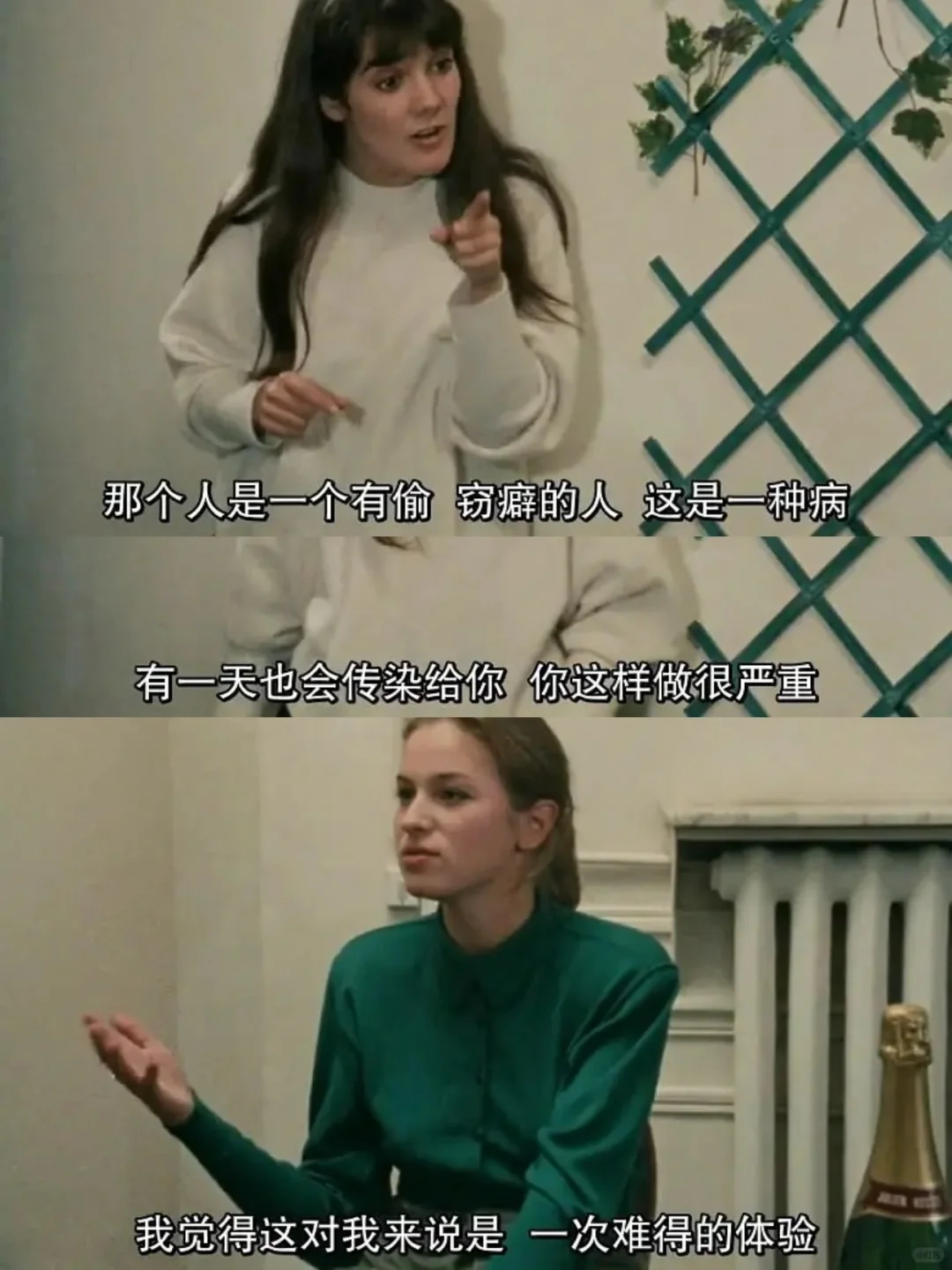 ᐂ第三段故事中,她们对社会边缘人乞丐、小偷、骗子进行了不同观点的讨论💬