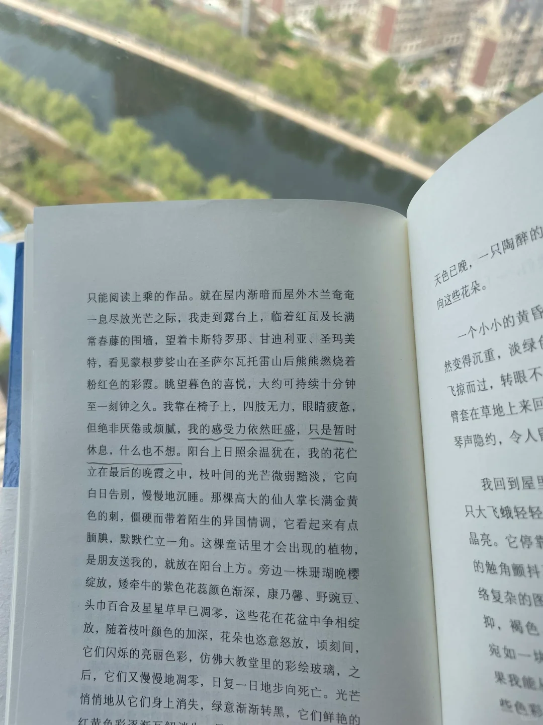 我,阳光,书籍,窗外的蓝天和绿植,这个场景真的太美了,祝姐姐一切都好!