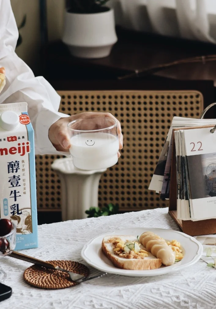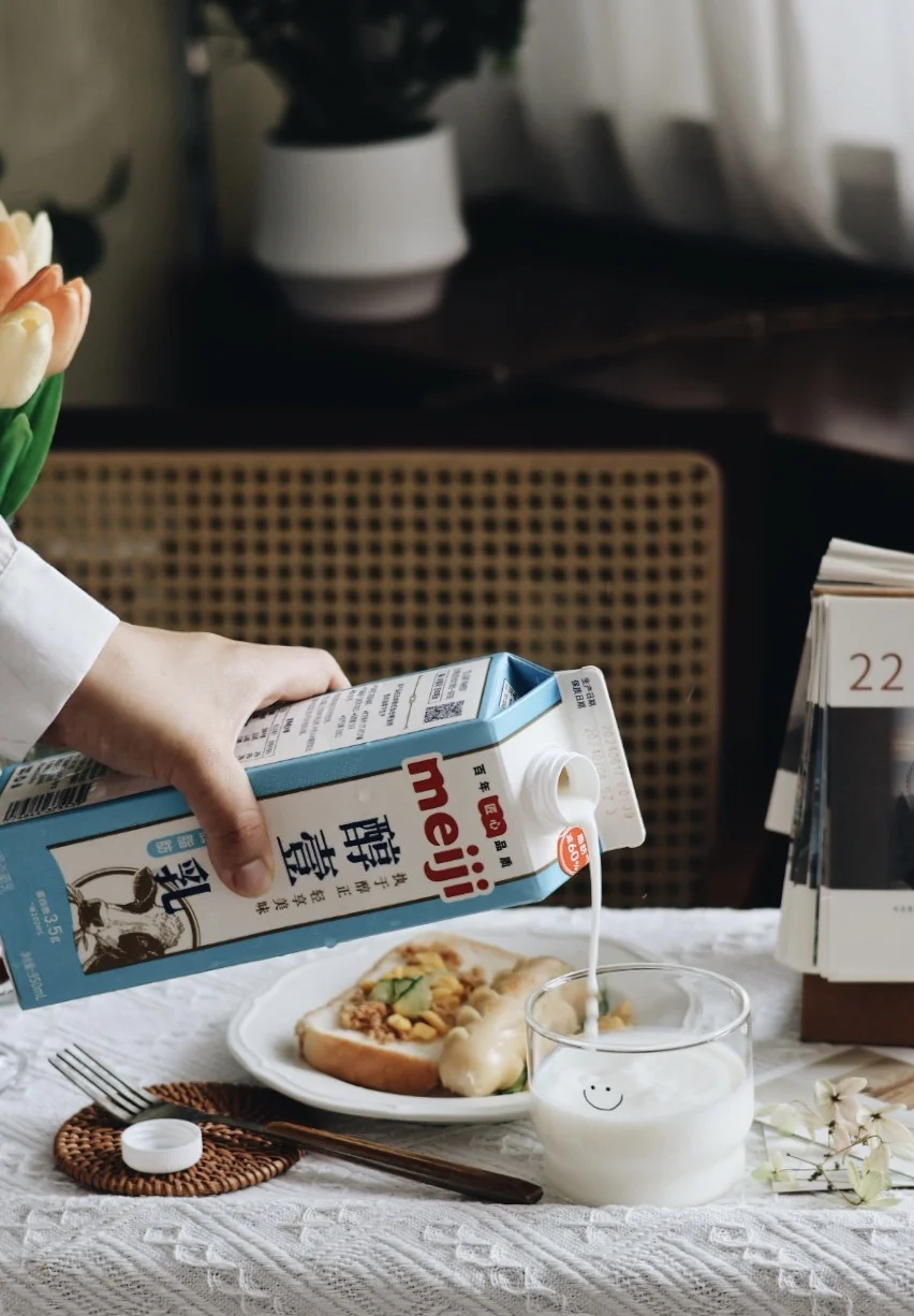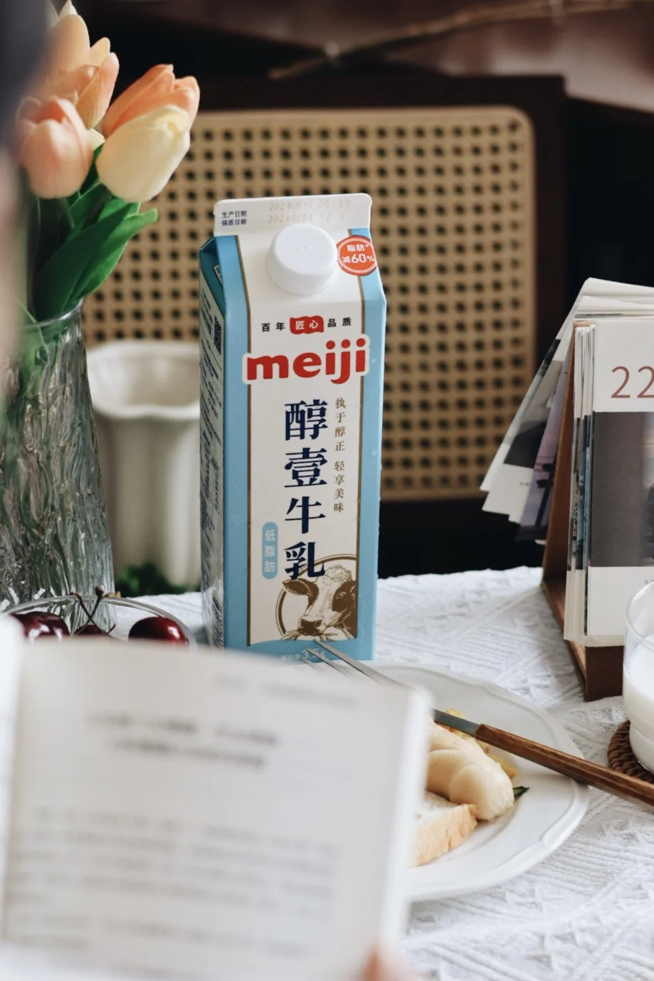 碳水,蛋白质🥛,蔬菜🥬是我每天必不可少的早餐。摄入蛋白质等营养,我选择这款无限回购的明治醇壹牛乳 低脂肪。