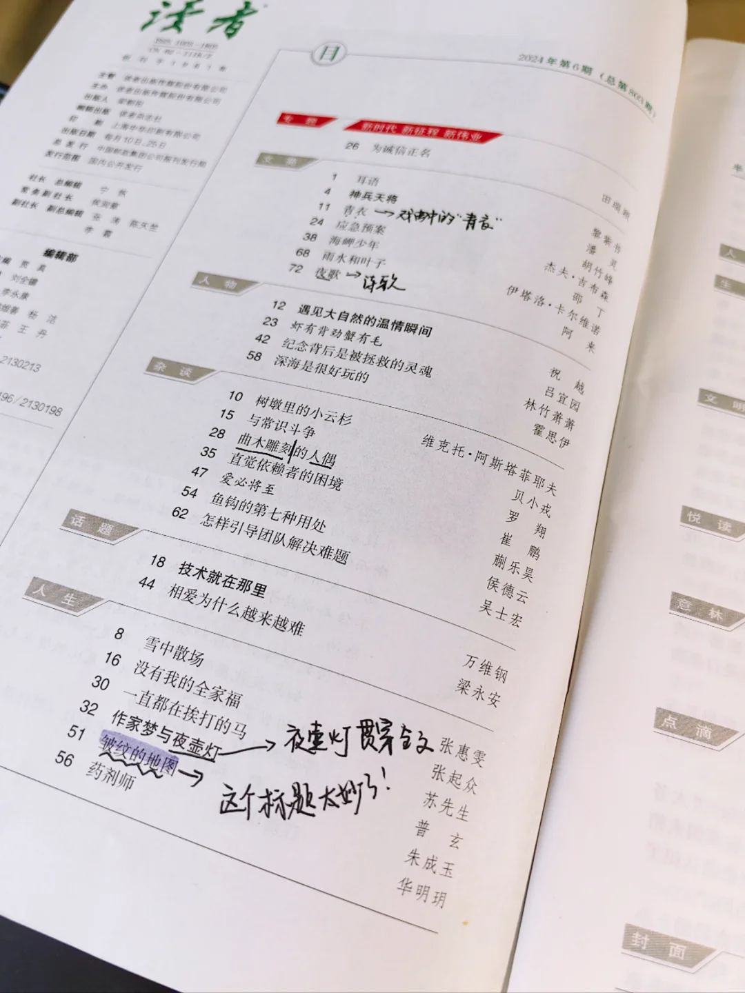 以前看《读者》,会看有意识地看作者和拆解一些好的文章,但是却忽略了《读者》的标题。经过我的写作老师提醒以后,才发现,原来《读者》的标题这么宝藏,比一本书还丰富,它里面几十个的标题真的可以直接拿来,放在自己的素材库里。以后写文章真的不愁没有好标题啦‼️