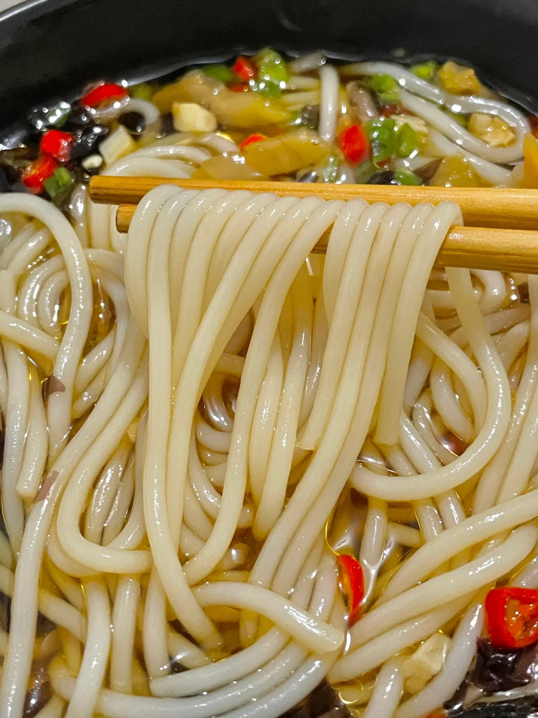 2⃣️起锅烧水,放米线煮熟。舀米线汤放碗中,捞入米线拌匀即可。