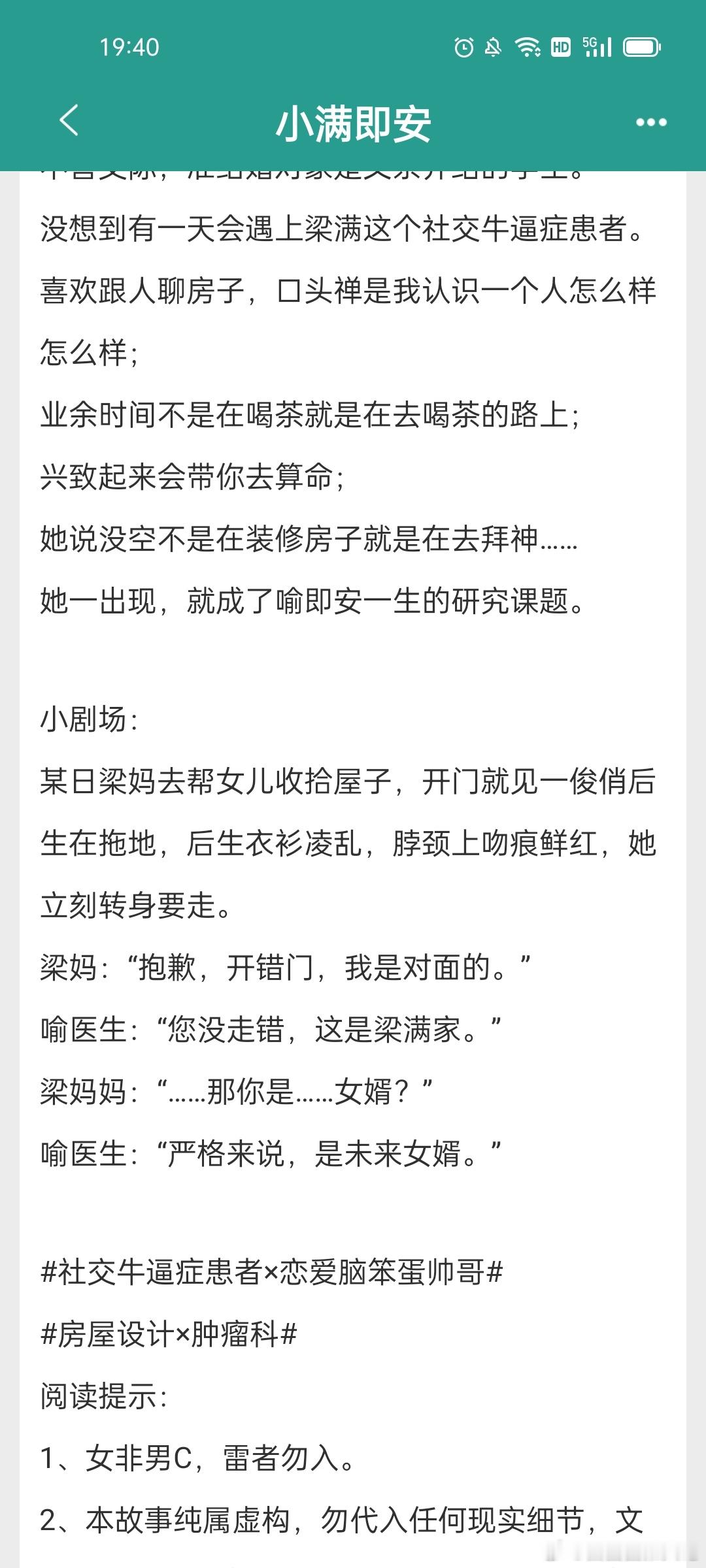 #言情小说推荐##每日推文[超话]#《小满即安》女主是房屋设计师,男主是肿瘤科医