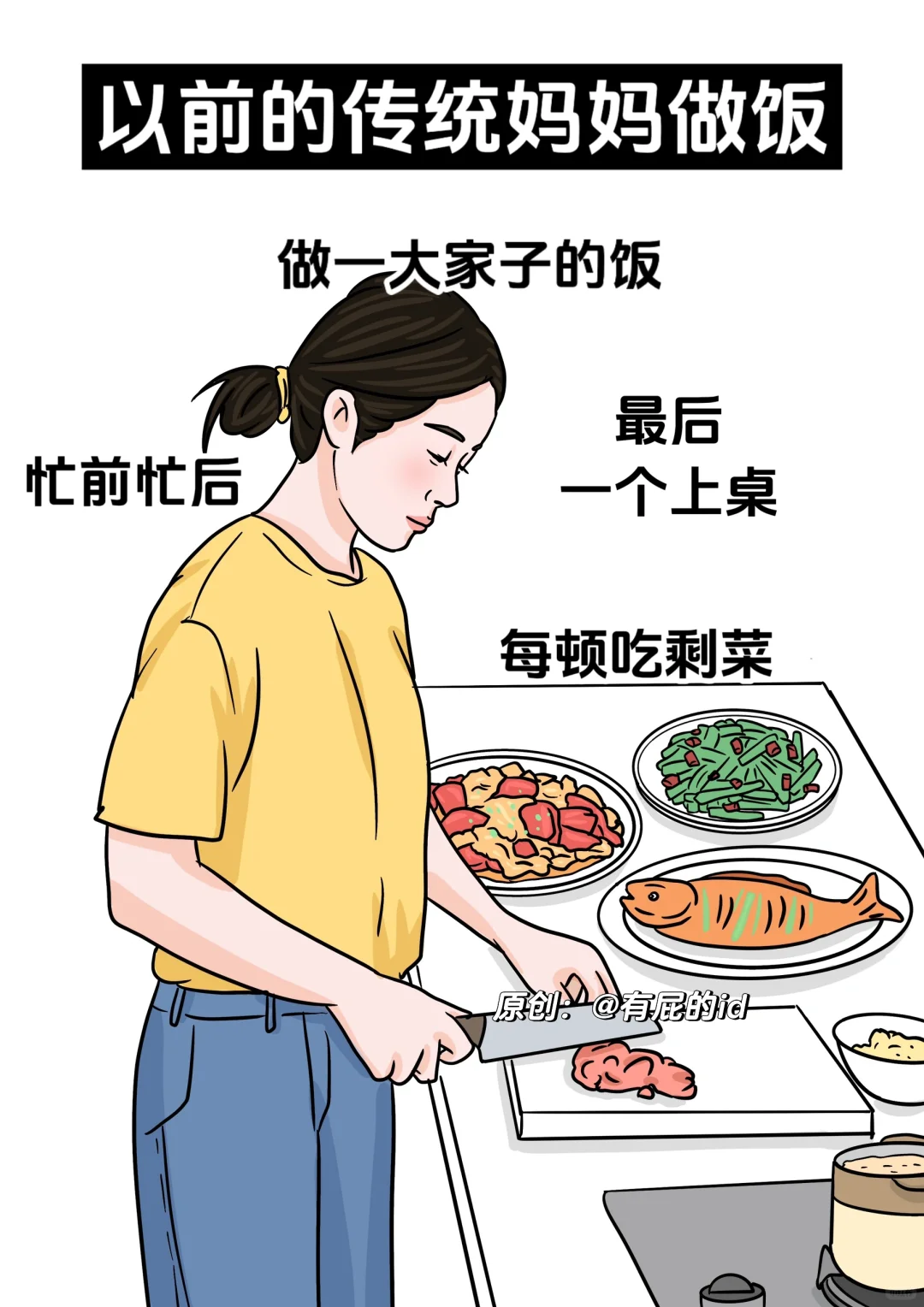 以前的妈妈当全职主妇,做饭带娃忙得团团转,简直就是田螺姑娘本螺。