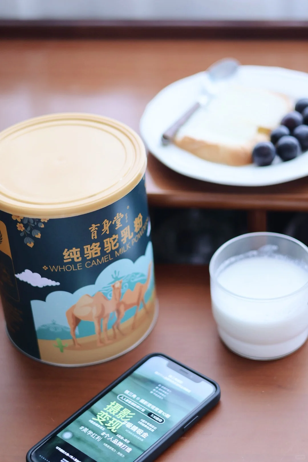 中年,认知上就会把健康放到首位。有运动,知保养。像我就是会吃🥚🦐喝奶等,还会喝这款育身堂纯骆驼乳粉,入口温润,入胃暖暖。