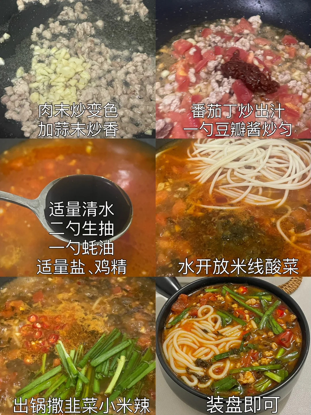 2️⃣适量清水、二勺生抽、一勺蚝油、适量盐、鸡精,水开放米线酸菜。