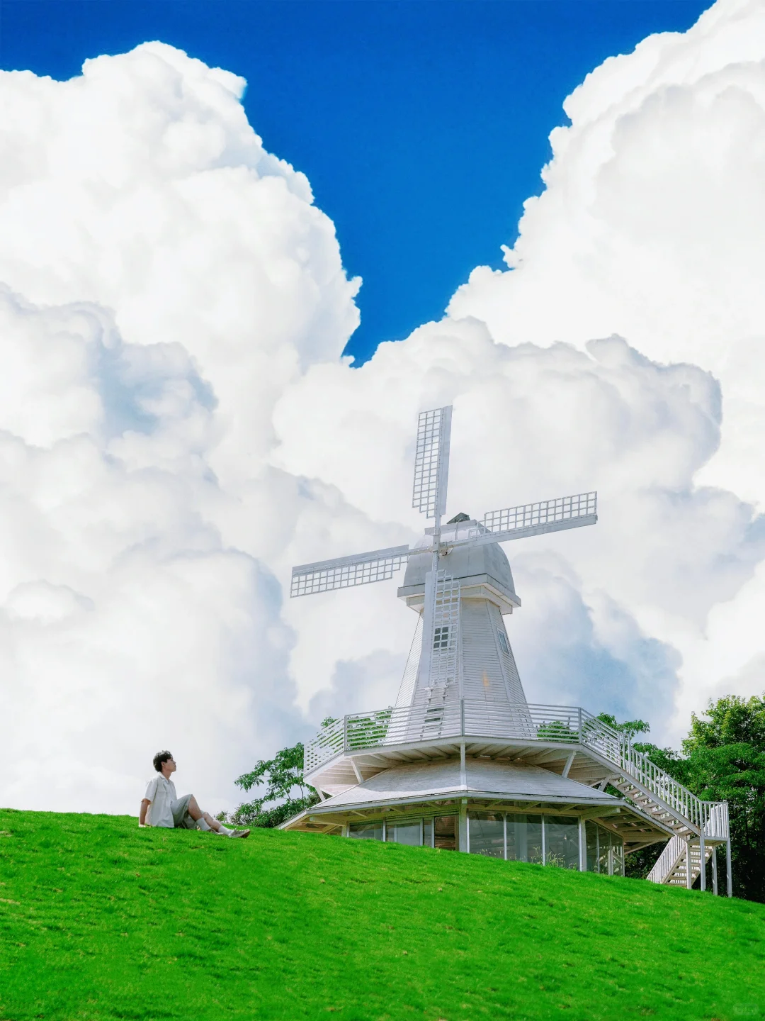 蓝天绿草,纯白风车,杭州最近的天气好的天天都是漫画云,拍照真的出片!