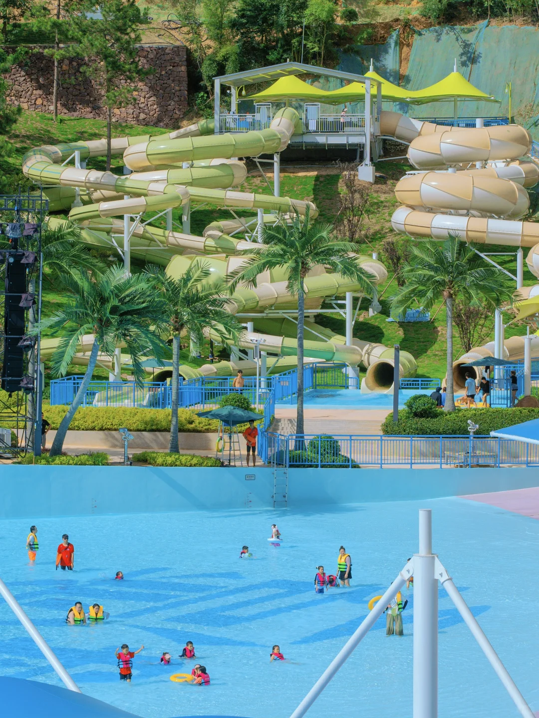检票口👉寄存中心存包换泳衣👉坐大巴上山👉世纪漂流👉水乐园👉陆乐园👉海的尽头