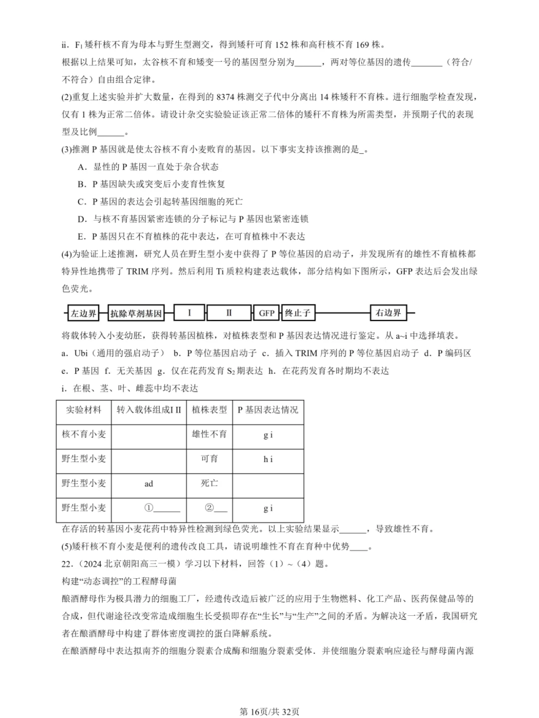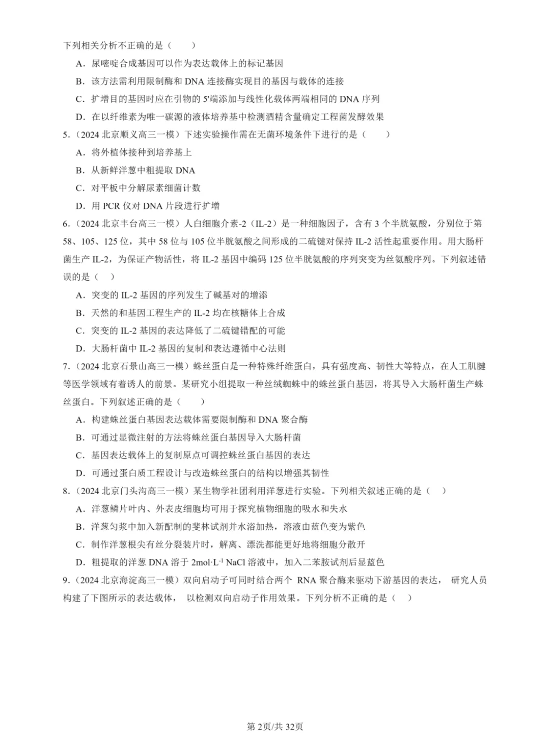 基因工程综合练习来咯,近几年北京各区一模汇编题,赶紧练起来吧~