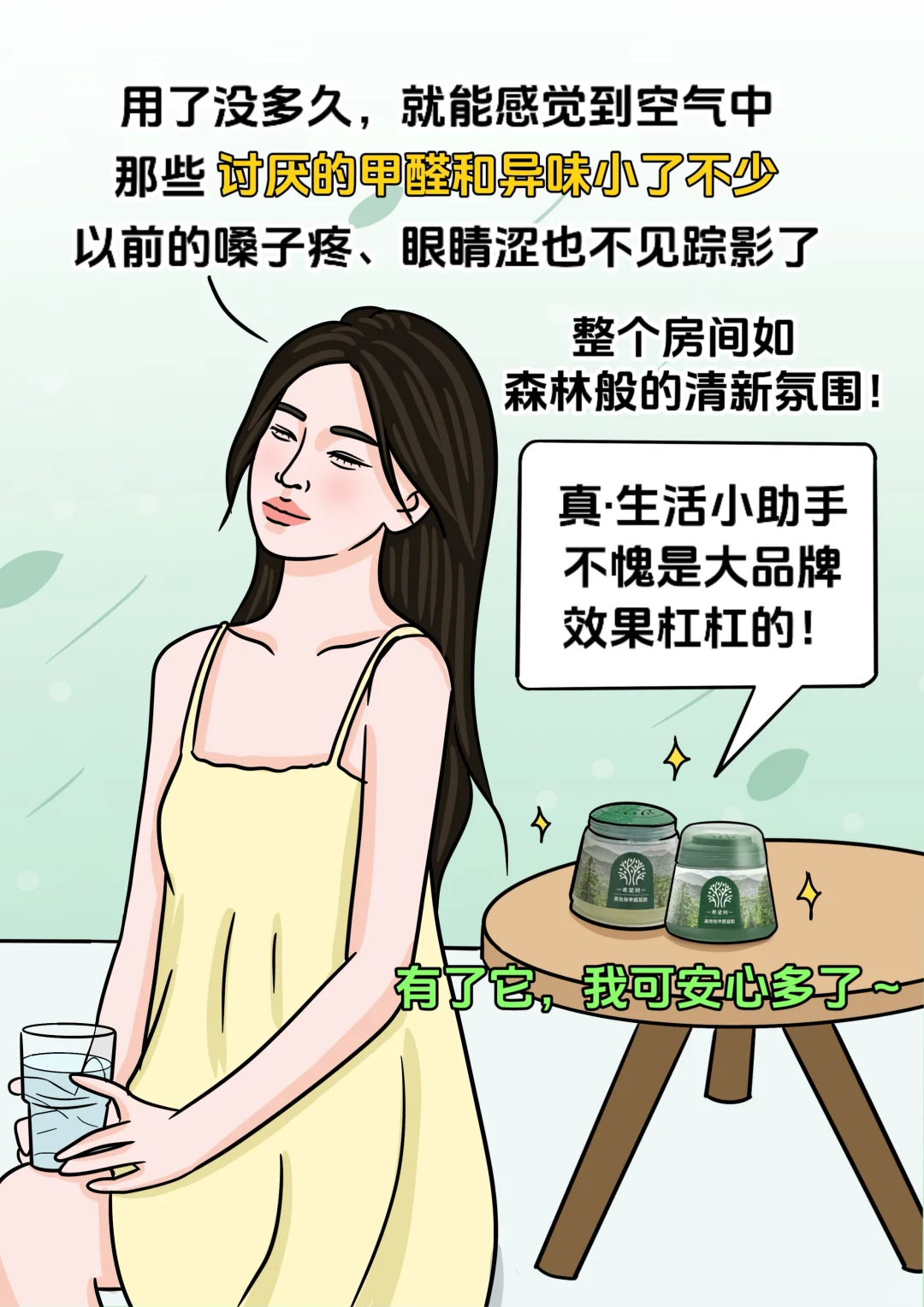 再看看我,感觉自己还是小孩心态,根本没想过会结婚生娃,连自己都养不活,经常找不到工作不说,租房子还被忽悠住进了串串房,还好我有希望树小绿罐,用了一段时间后感觉异味小了不少,现在可安心多了~