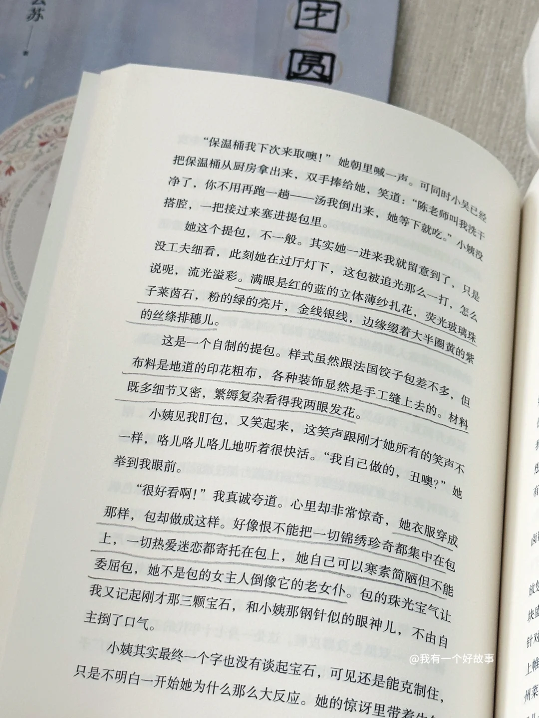 ✍🏻比如写小姨做的包:她的衣服穿成那样,包却做成这样。好像恨不得把一切锦绣珍奇都集中在包上,一切热爱迷恋都寄托在包上,她自己可以寒素简陋但不能委屈包,她不是包的女主人倒像是它的老女仆。