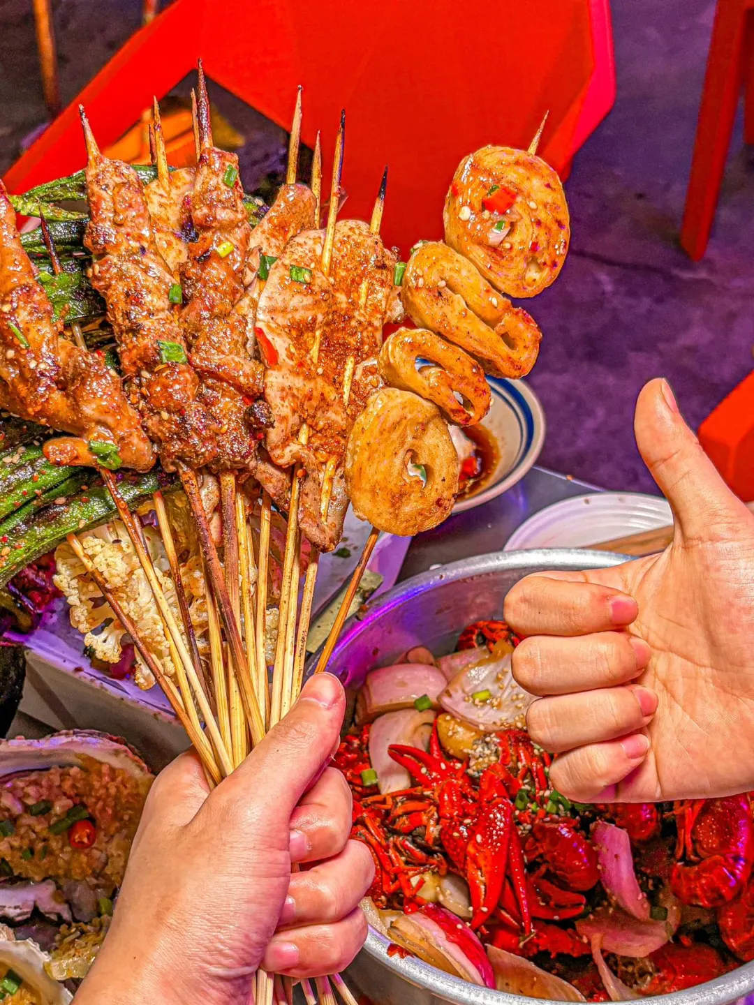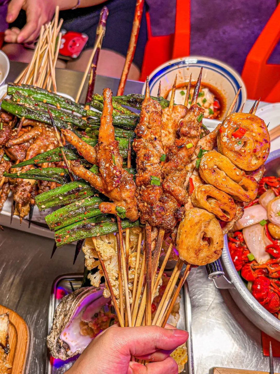 生蚝的个头好大!一口一个太满足了而且他家的酱料调得很好蒜泥放得刚好各种各样的烤串根本吃不完