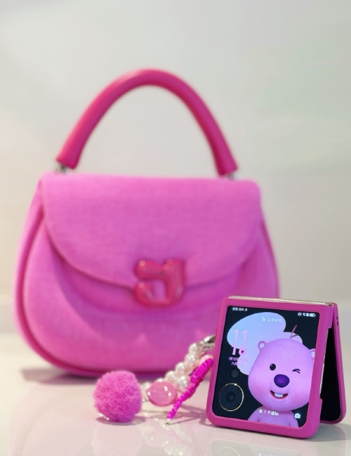 我把荣耀Magic V Filp借给朋友使用,她自己网上买了手机壳和小包包来进行搭配,展现自我风格和情绪!