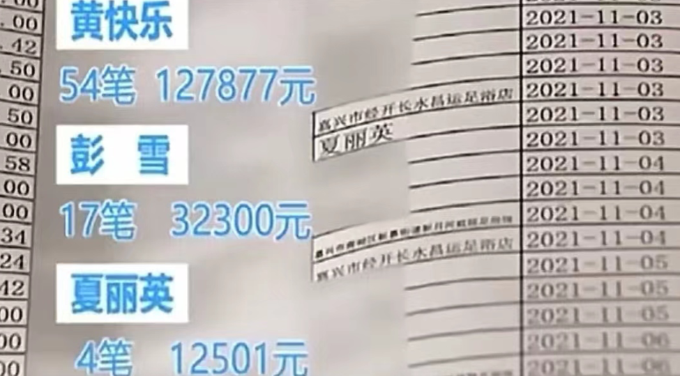 更诡异的是,老金还频繁给3名女子转账,给黄快乐转账多达54笔,共计127877元。