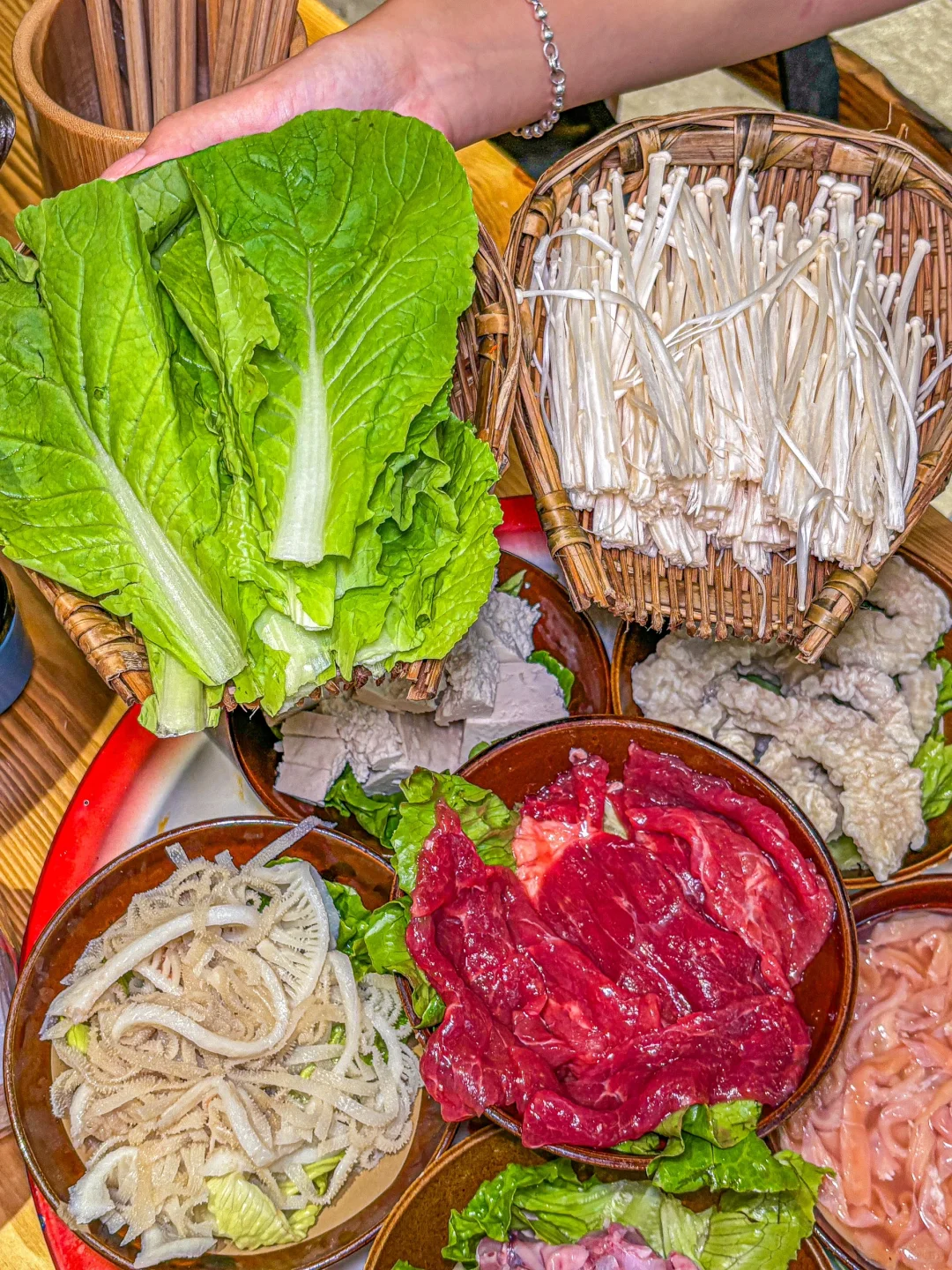 蔬菜也都是用簸箕板装的 氛围感拉满💡