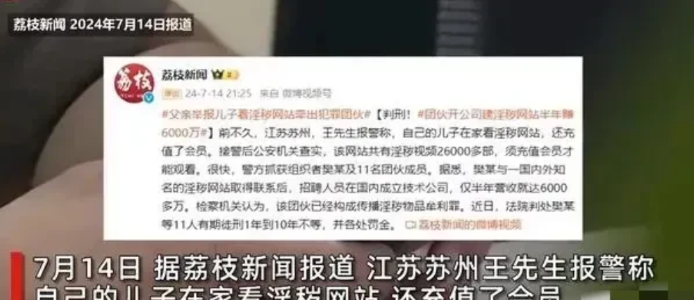 大义灭亲!江苏苏州,一位父亲发现儿子在家看黄色网站,会员费一个月就要30元!这可把这位父亲气坏了,怒而报警,警方根据线索顺藤摸瓜,竟发现这网站的负责人建立该不雅视频网站仅半年,就获取了不法利润6000万元!最终,法院判处该网站的负责人10年有期徒刑,可网友的反应却亮了。