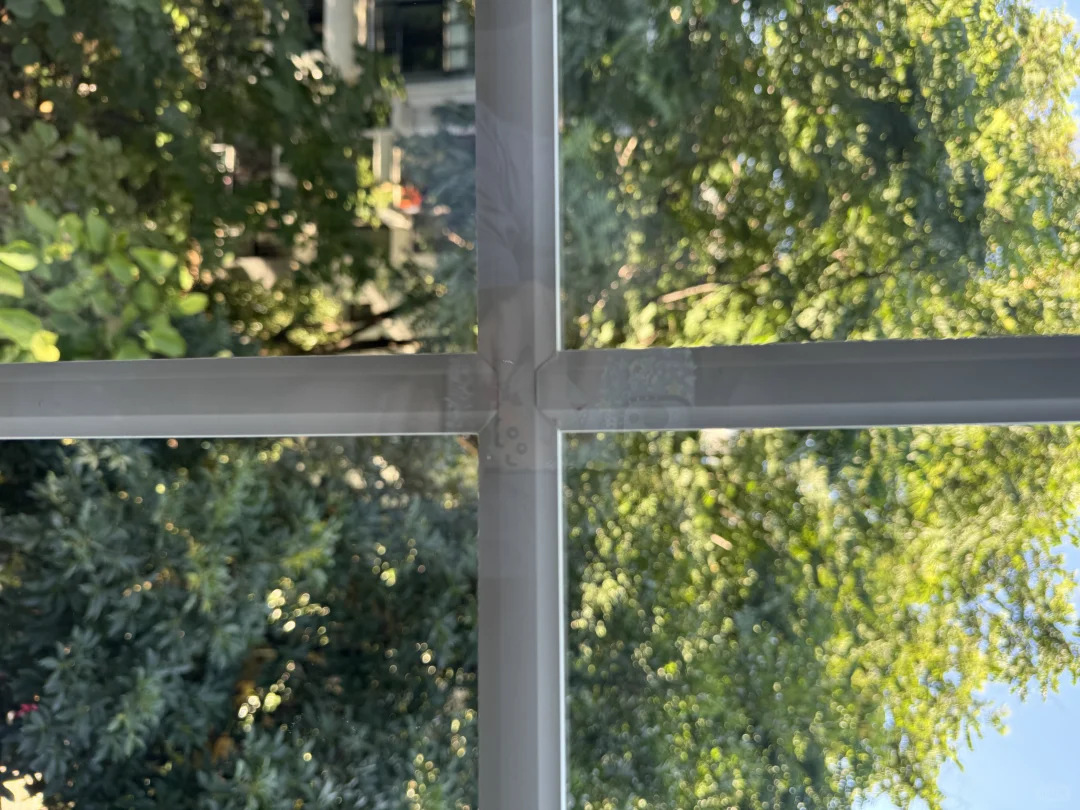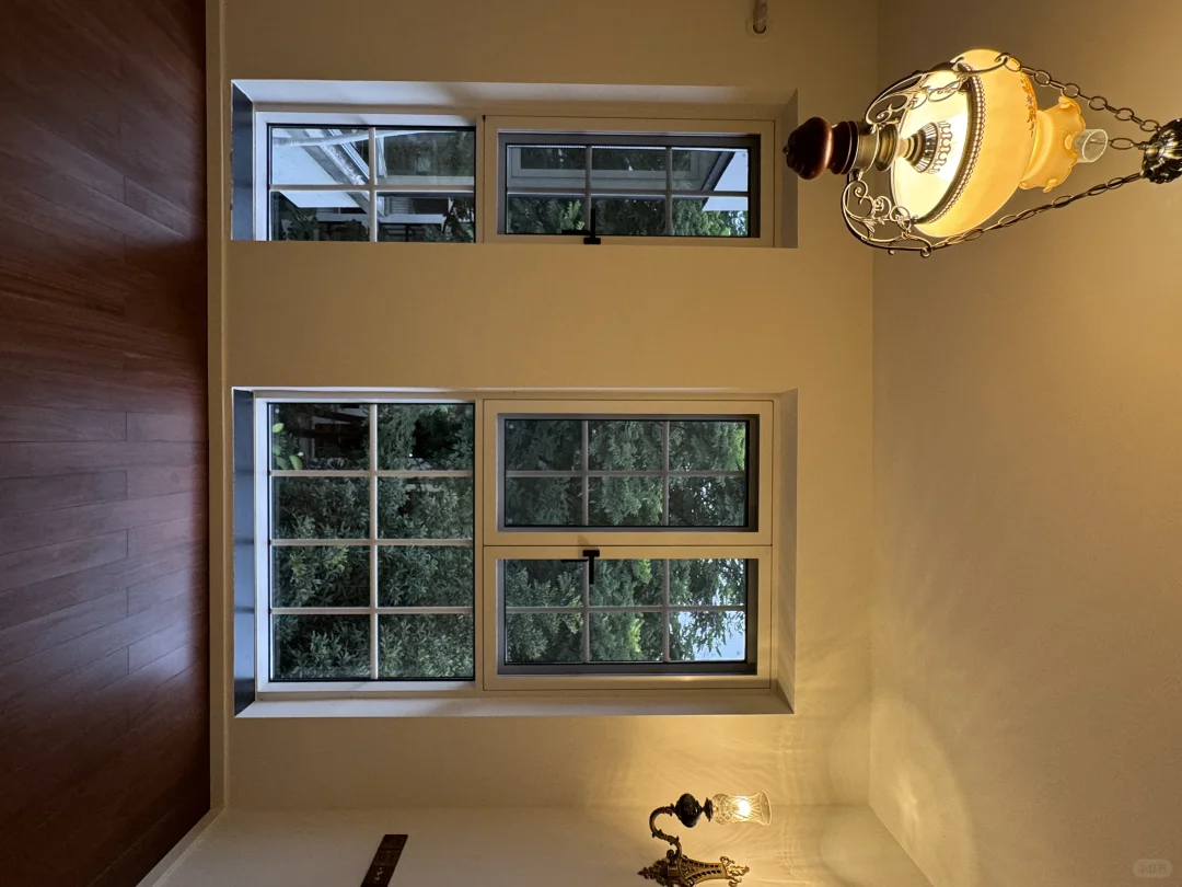 朋友都以为是老钢窗!! 尺寸见图12/13 装修初期就决定轻硬装重软装 但门窗地板依然是不可小觑的项目 决定了房屋的基础调性和风格 窗户是家的眼睛 看到窗外的参天大树时脑海里就有了概念🌳 喜欢格子窗带来的复古气息~ 线下咨询了很多品牌商家 老钢窗均价基本1500/平以上 在对比了老钢窗和断桥铝后 ☁️还是决定选择了断桥铝: 1. 密封性好 2. 老房子隔音差强人意 中空夹胶玻璃隔音更好 3. 一般断桥铝都有一套适配的纱窗 树景房很考虑防蚊虫 4. 断桥铝做的格条可以嵌入玻璃 好做卫生 5. 性价比高 断桥铝可以控制在1000/平左右 断桥铝做格子窗好看的关键: 1️⃣格条款式 格条一般是窗户厂家找格条厂外包做的 所以很看窗户商家合作的格条厂款式如何 一开始封窗老板给我发的格条就是普通的直条子 做出来会略微呆板 让老板多费了点心 最终找到了暖白色凹凸有致的条子 稍微自然松弛一些 2️⃣格条宽度 我的窗框宽度6cm 格条做的2cm 太细会没存在感 建议1.5-2cm之间 3️⃣格条比例 因为没请设计师 自己也不会电脑画图 所以是在纸张上完全等比例缩小画出窗户长宽高 再按照感觉调配合适比例 感觉不出来可以多在网上找参考图看看喜欢哪种密度 4️⃣格条颜色 可以跟窗框颜色适配是最好的! 我就在这翻车了 虽然和窗框都是米白但是一对比还是有很明显的色差 刚开始接受不了现在看顺眼了🧐