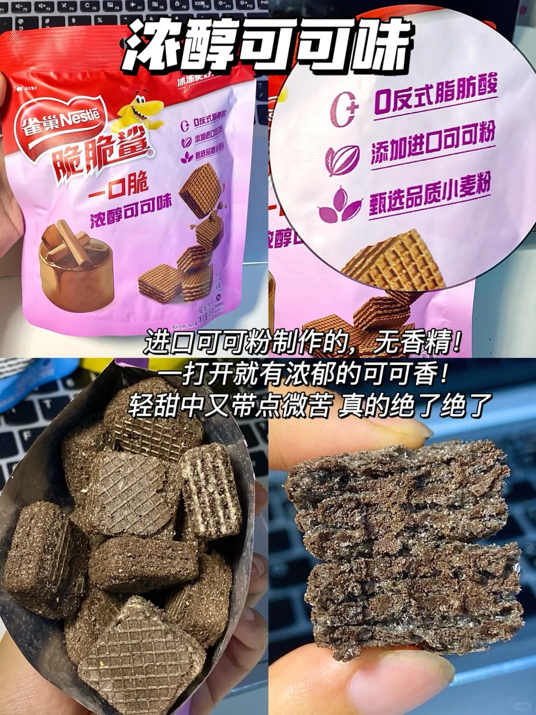 ✨用了雀巢的独家烘焙工艺,口感超级酥脆!每一块都贼多层,每一层都贼多料,酥脆饼干和香浓夹心的结合,一整个好吃住了
