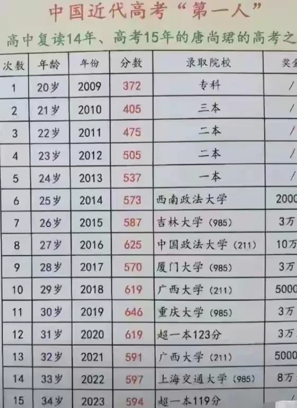 成了高考专业户了,同时也成了一名网红,要说钱应该不少赚,这样看的话,高考就成了他的职业,而不是大学。