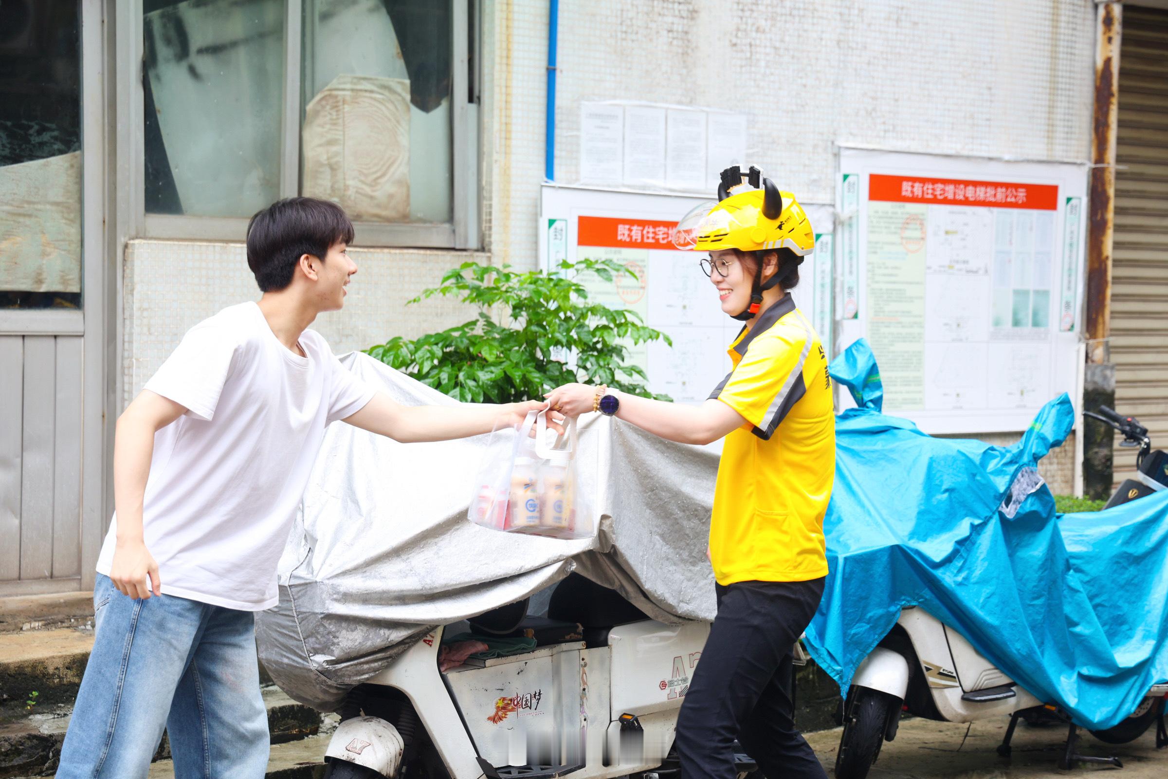 傅园慧将装扮成外卖骑手,在广州为用户们送免单牛奶(蒙牛早餐奶),这可真是使出了洪荒之力啊[偷笑][偷笑]
