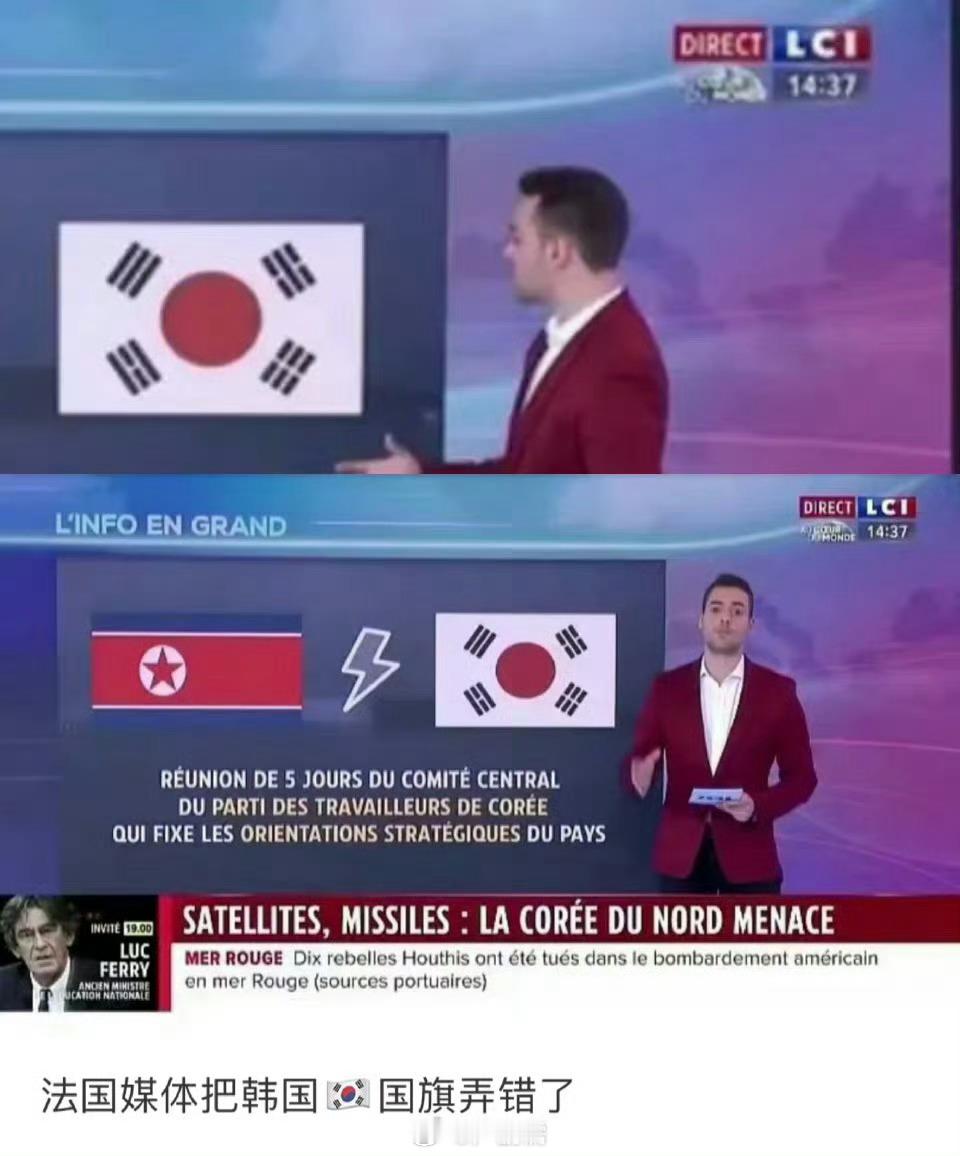 法国媒体也在各种节目里不认识韩国国旗,难怪说法国人天天两眼一睁就是惹韩国人生气[笑cry]