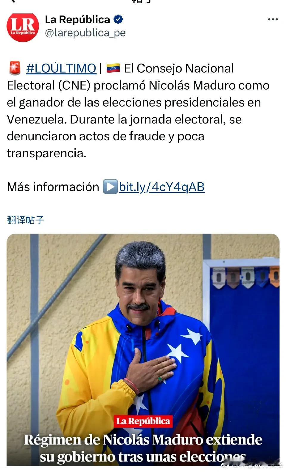 委内瑞拉总统选举,有5点想不到: 1.想不到28日的总统选举,同时受到中、美、俄三个大国的高度关注。 2.想不到根据最新民调,反对派总统候选人冈萨雷斯竟然领先马杜罗至少20个百分点。 3.想不到委内瑞拉的总统选举竞由美国监督,并且无条件接受选举结果。 4.想不到委内瑞拉的老百姓不支持现任总统马杜罗。 5.想不到马杜罗执政10年,给委内瑞拉人民带来了严重的经济危机。#委内瑞拉现任总统赢得总统选举#