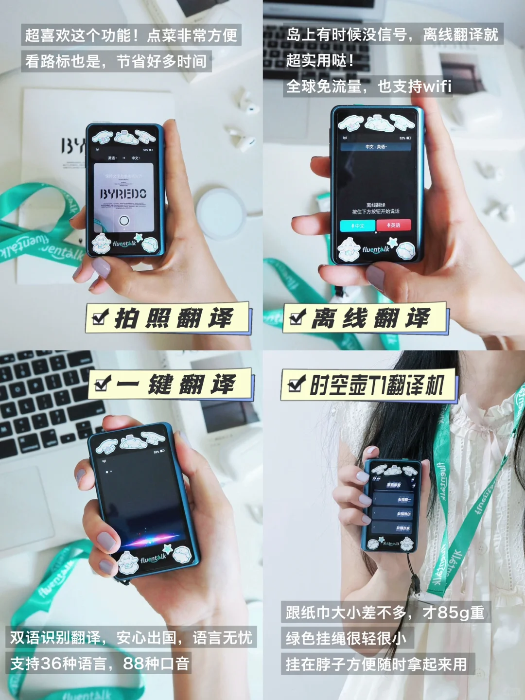 ✨时空壶T1翻译机:语音翻译支持36种语言88种口音,拍照翻译能识别39种语言文字,除了可以连Wi-Fi使用,它还有离线翻译功能,提前下载离线翻译包就能使用,自带1年全球免流量,出行安全感拉满了!!机身跟纸巾大小差不多,送的防盗挂绳随身携带也超方便