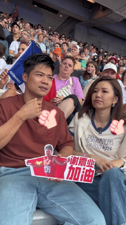 #苏炳添身在观众席心在起跑线##苏炳添以观众身份现身奥运会田径赛场# 天我这是看到谁了!苏炳添现身巴黎奥运会田径赛场观众席!手里还拿着谢震业加油的牌子~是在以观众的身份录制节目《冠军观赛团》~曾经自己挥洒汗水的跑道如今坐在第三视角心里一定感慨万千吧,一起为谢震业加油,也期待苏神的下次赛场!