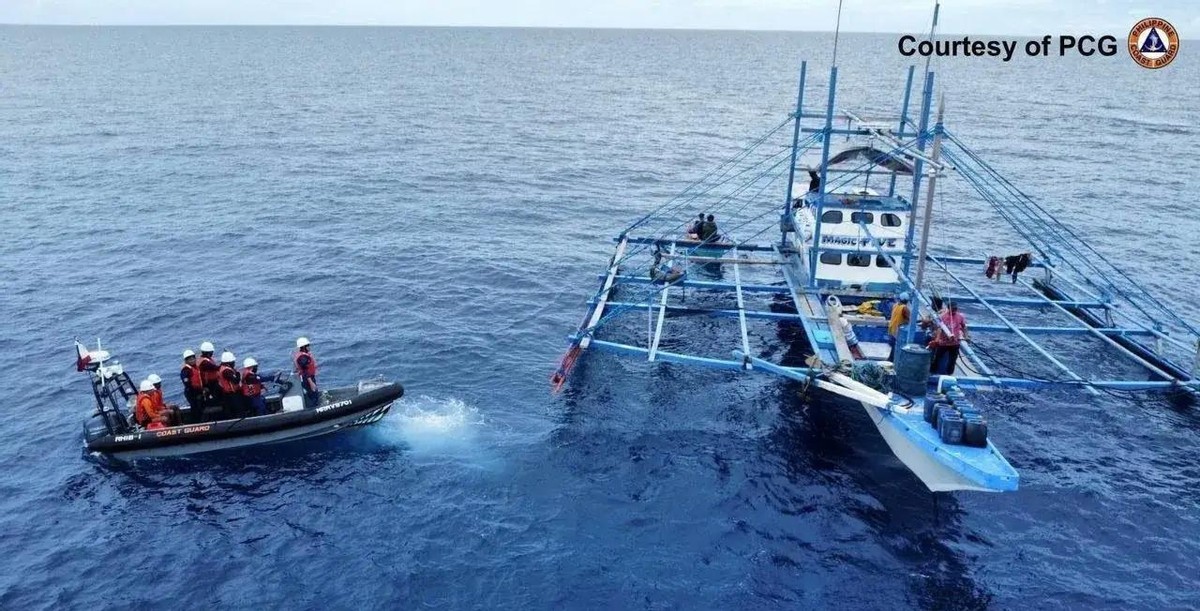 说起来,这菲律宾人刚在仁爱礁那边搞完补给和换人,现在又跑到仙宾礁来闹事,明显是故意的。他们搞了个“海上英雄主义”的活动,其实就是两艘大点的渔政船去仙宾礁里头,给菲律宾的渔船免费送油,结果好多渔船都跟着去了,场面挺热闹的。中国海警的船就在那儿,看着别让事儿闹大。