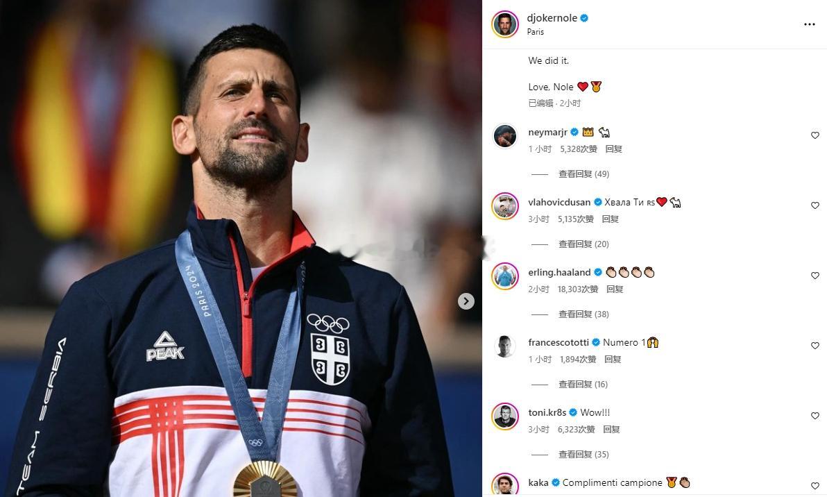 德约科维奇夺得奥运网球男子单打冠军,足坛众多球星为他送上祝贺。