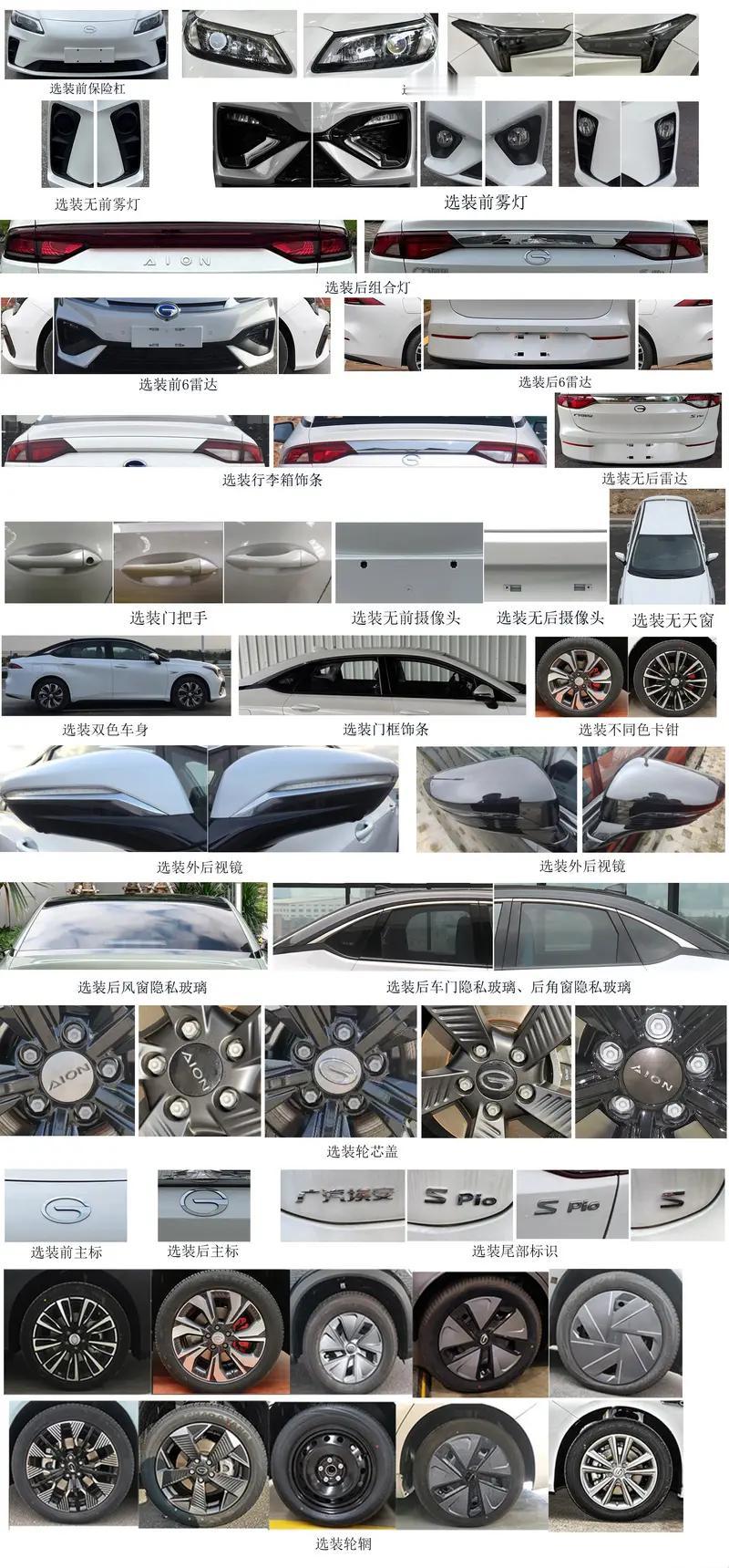 【全新埃安AION S申报图 提供丰富选装配件】在工信部最新一期申报图中,我们发现了全新埃安AION S的身影。新车提供丰富的选装配件,配备汽车事件数据记录系统(EDR),可选装ETC车载装置。 全新埃安AION S外观较现款变化不大,细节方面有所微调,尾灯处变化明显,车身尺寸方面,车辆的长宽高分别为4768/1880/1545mm,轴距依旧为2750mm。 动力方面,新车搭载永磁同步电机,配备磷酸铁锂电池,峰值功率100kW,续航方面或与现款一致。【来自懂车帝车友圈】