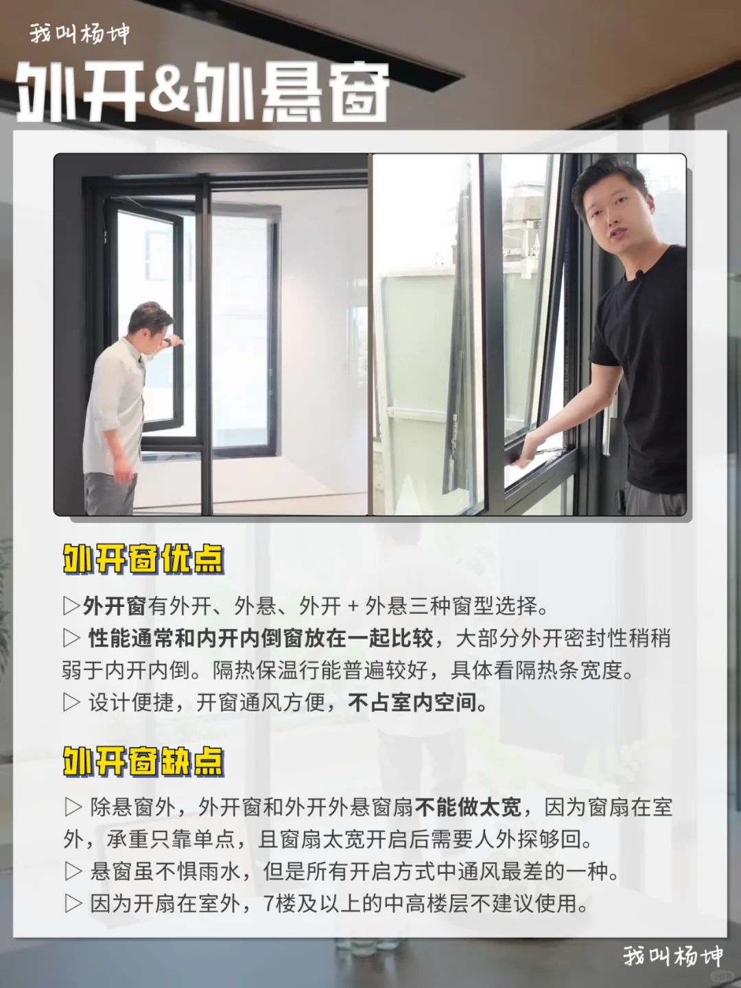 ✅外开窗有三种选择:外开、外悬、外开+外悬