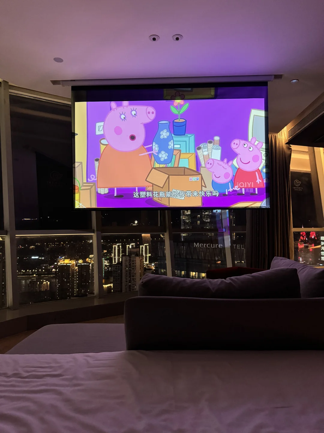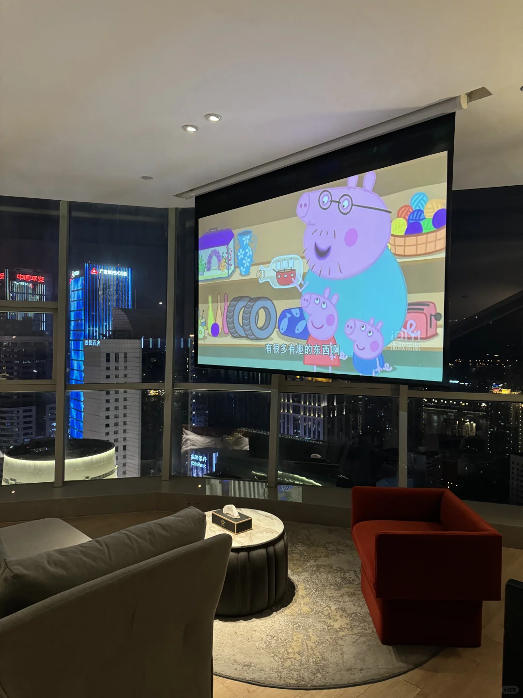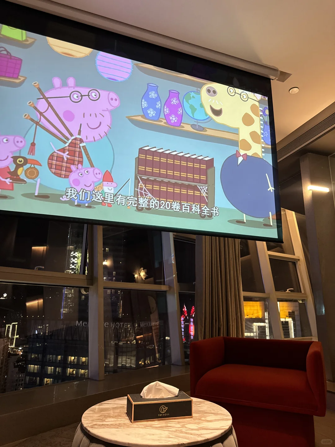 这次选择的是天际·270度全景环幕THEMOSS套房,房间里有红酒和小饮品~