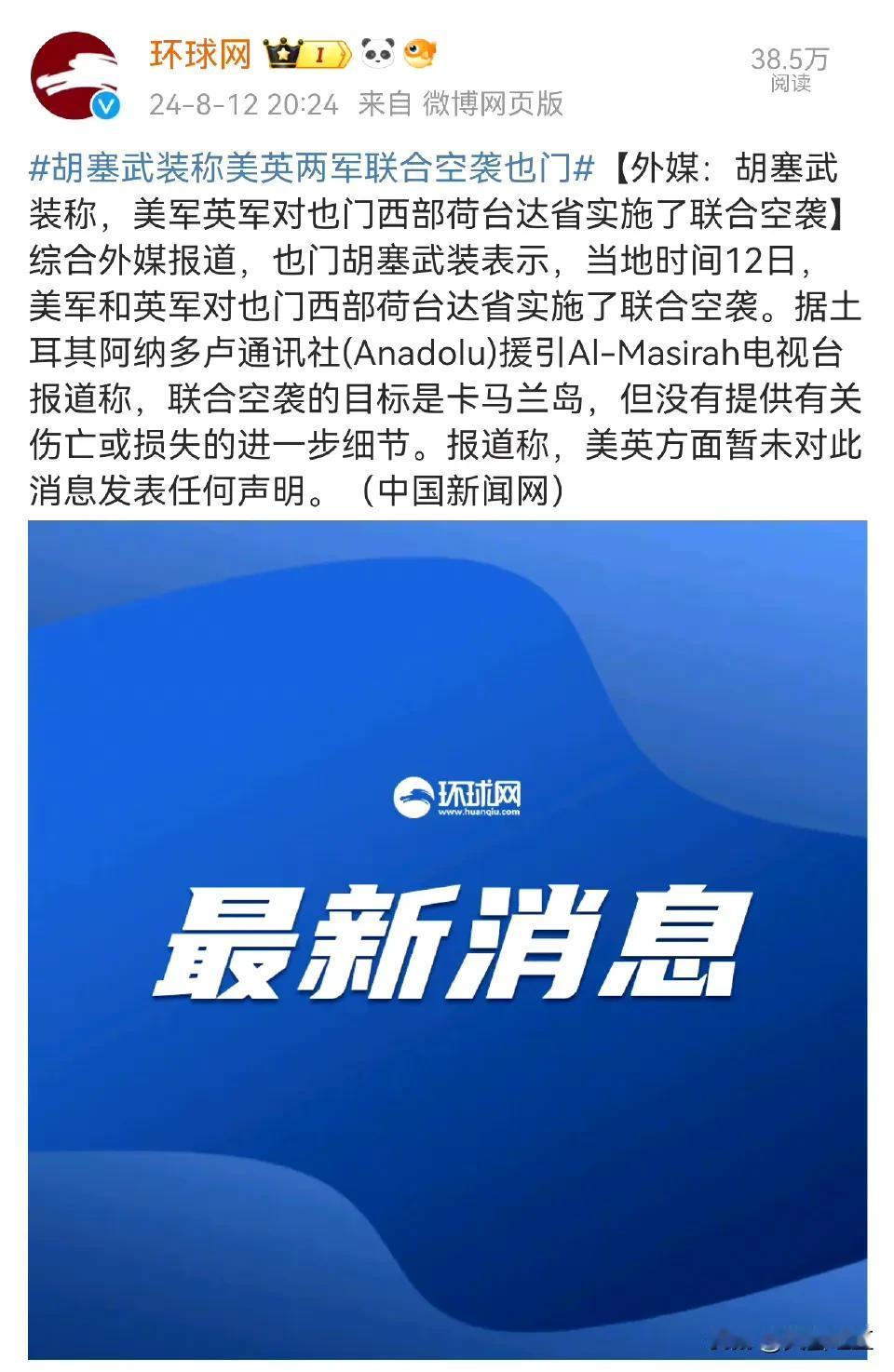 胡塞武装称美英两军联合空袭也门。 在和美国空袭也门的当天,英国还与德国法国一起呼