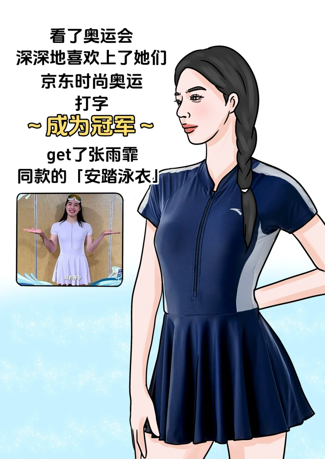 奥运会让我们看见了女性力量,发掘了女生更多的可能性,真的会为她们的精神而动容,我也想通过日常的锻炼增强体质,变得更加有力量,所以在京东时尚奥运,打字~成为冠军~get了张雨霏同款的安踏泳衣,希望自己通过运动也能变得积极乐观,成为自己的冠军,主宰自己的生活!