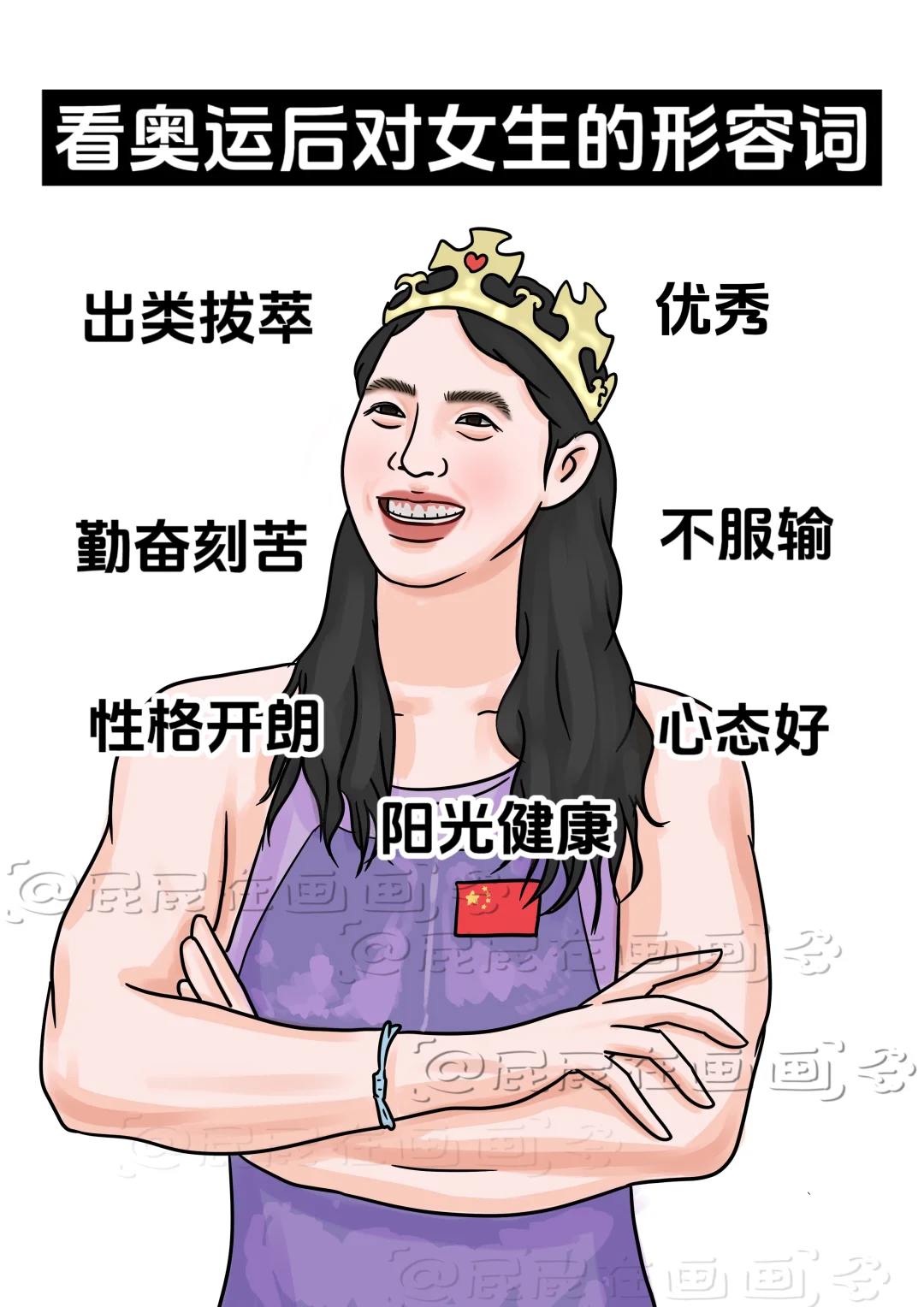 看了奥运会以后形容女生的词汇:强健、力量感,坚韧、生命力、阳光健康!