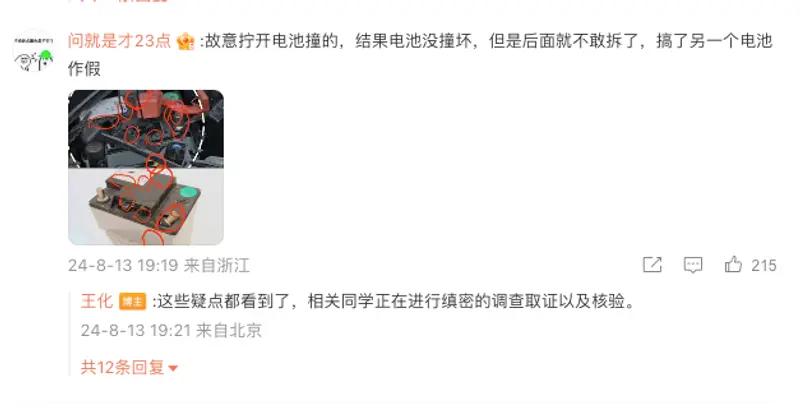 【王化:自媒体测小米SU7对撞极氪007 相关同事正在研判】日前,小米公关部总经理王化在社交媒体称:“自媒体测小米SU7对撞极氪007进行了回应:视频看了,相关同事正在研判。” 针对网友对视频中关于小电池的争议,王化表示,这些疑点都看到了,相关同学正在进行缜密的调查取证以及核验。 8月13日,一名汽车博主发布了《当小米SU7撞上一辆极氪007。。。》的视频。在此次测试中,博主选择了两款热门车型车型进行碰撞测试,分别是小米SU7和极氪007,碰撞的速度为时速60公里,按照90%的重叠率进行碰撞。【来自懂车帝车友圈】