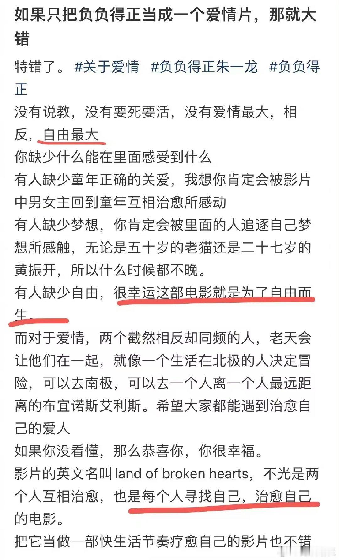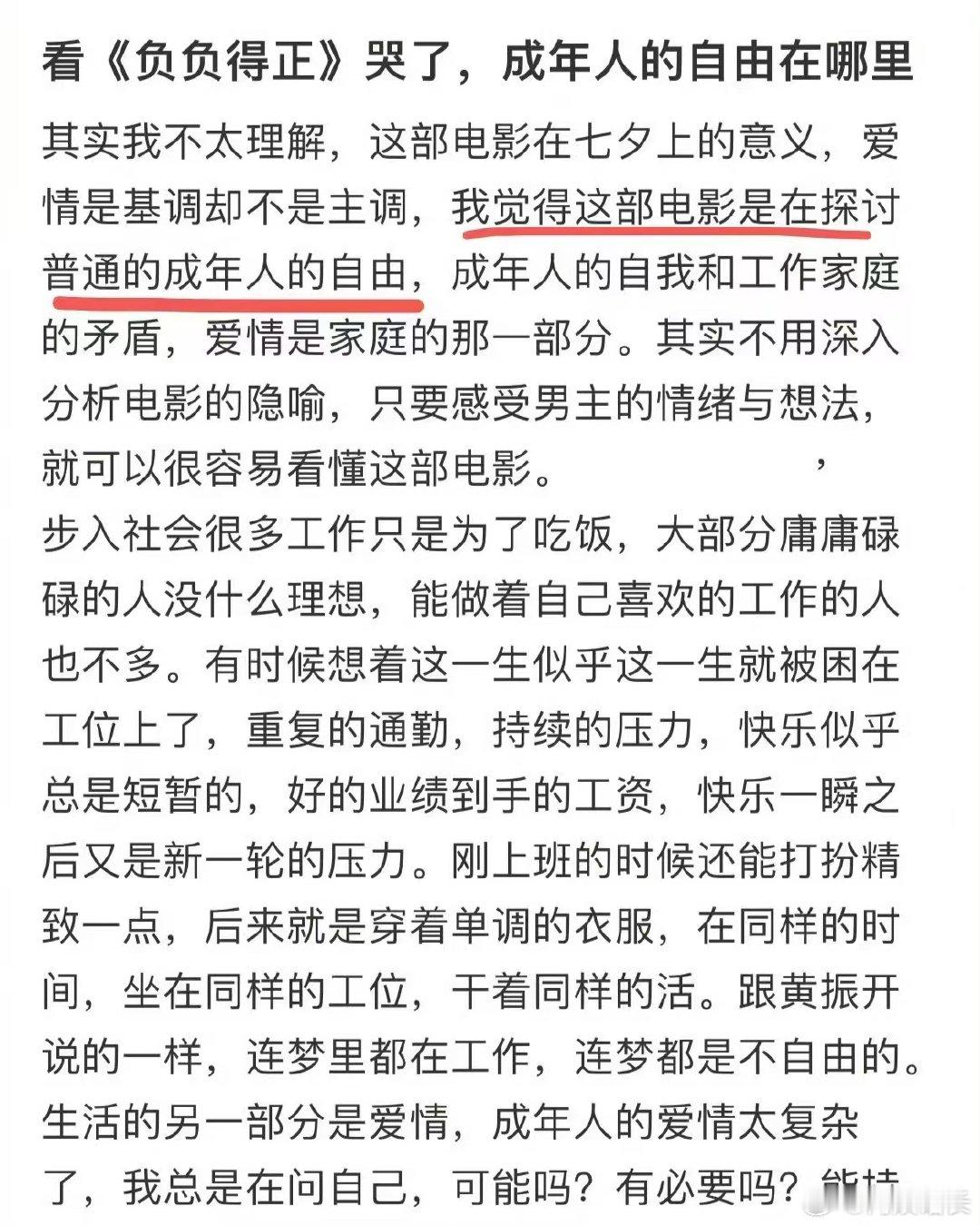 #负负得正 多我一个自由的人怎么了# 对于成年人,自由是摆脱疲惫与困扰的解药。《负负得正》传递勇敢的力量,让我们不随大流。追求自由并非舍弃责任,而是在责任中为心灵找到栖息之所,让生命绽放光彩。