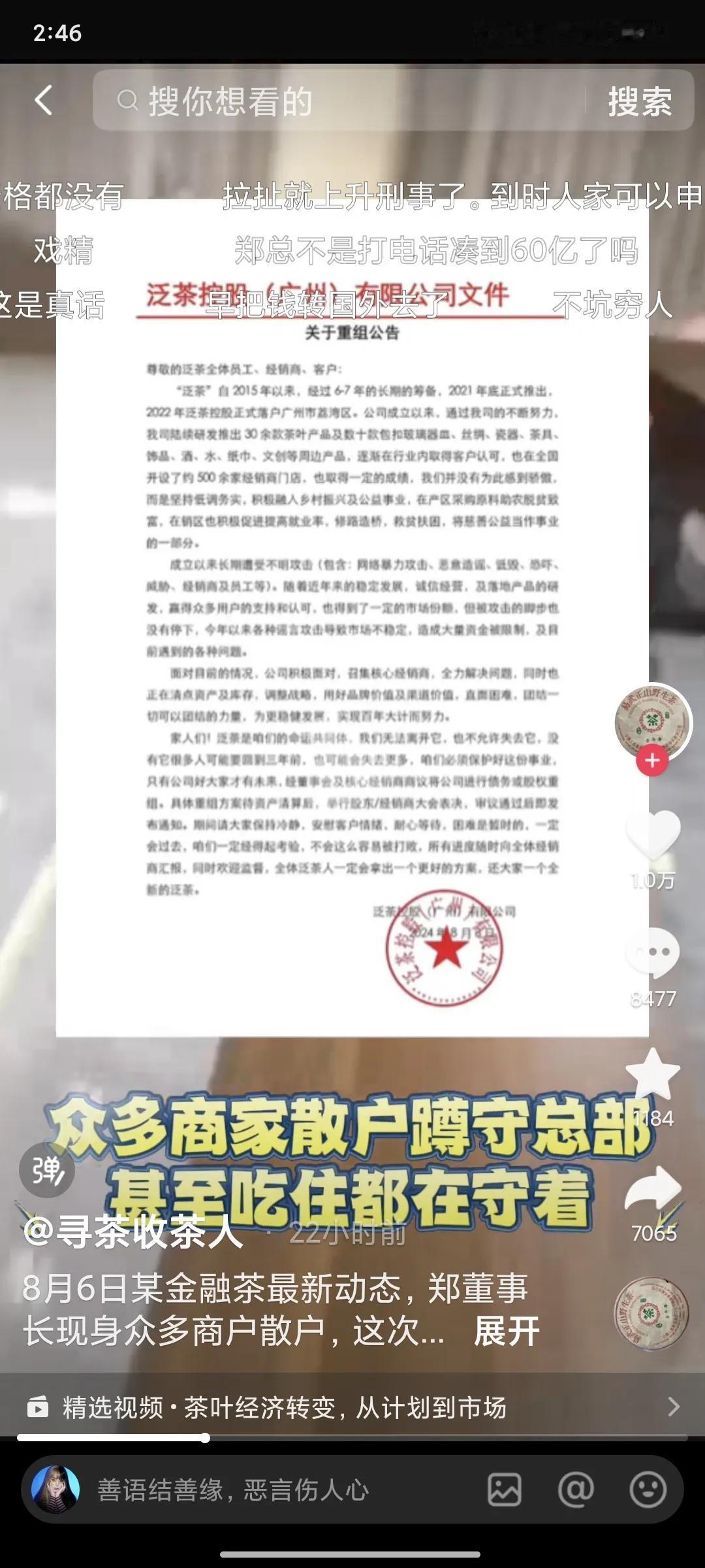 泛茶事件再一次说明太容易赚到的钱都是守不住的,最终还是会以各种方式亏完的。 有些人因为吃了点时代红利或者不小心站在风口上大赚了一笔,心里就膨胀了,认为自己能力超过了马云,投资眼光超过了巴菲特。 想凭着自己独特的投资眼光在财富的道路上再高歌猛进一把,结果就是一把就亏完了。一夜回到解放前。