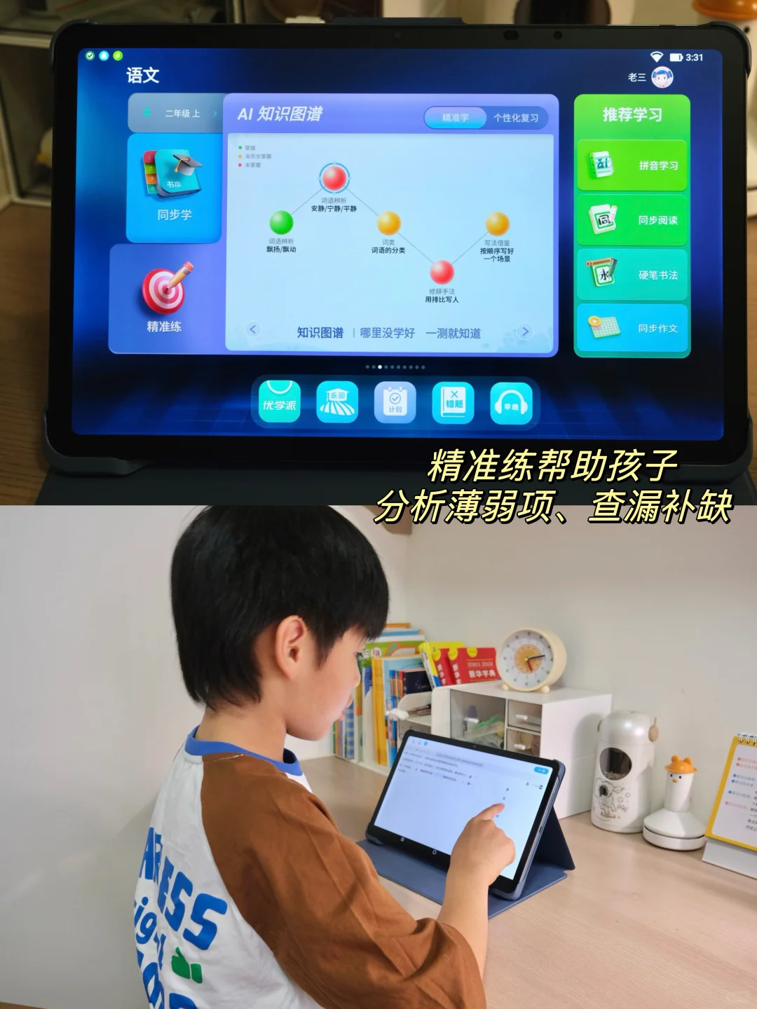 这个暑假是哥哥弟弟小学的第一个暑假。 经过了一年的学习,这才开始逐渐抓到小学课程的节奏。他们的学习成绩不算好,一直在班里中等水平,所以我就打算在暑假给他们好好学习一下,买个学习机预习一下二年级课程💪! 但是又怕他们长时间盯着学习机对眼睛👀不好,所以我选择学习机的第一要素是护眼,其次是学习需求,综合下来选择了性价比很高的优学派E26学习机。 - 优学派E26是12英寸的大屏,哥哥弟弟一起用都可以,屏幕就像书本一样,不反光不刺眼,光线柔和,用眼就更舒适了👍。 E26的功能足够全面,小学语数外三科都有,初高中的科目我看了也都有。校内预复习用同步学+精准练,各科目的教材及练习超级全!还能用书本和学习机互动,不懂的单词在书上划一划、指一指就有讲解。孩子不懂的不用查手机,也不担心孩子被手机上的其他信息吸引走注意力~ 通过精准练还能智能诊断,帮助孩子分析薄弱项、查漏补缺,整个学习过程都是特别清晰有条理的,优学派真的是超厉害的小老师🥰! 孩子暑期里还有一些练习作业,这批改的任务也交给优学派了。几秒钟就能解决一整页的题目,错题讲解和拓展例题,要多详细有多详细,错题还能收藏到错题本,真的实用住! - 不用不知道,用了直呼“真香”!学习机真的让学习变得更加轻松。希望这个暑假,在优学派E26的帮助下,让孩子爱上学习,乐于学习,争取在新学期能有大大的进步!