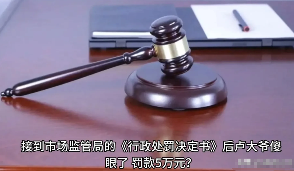 随后,市场监管局对卢大爷做出了行政处罚,因卢大爷家的油条不符合食品安全标准,对其罚款5万元。