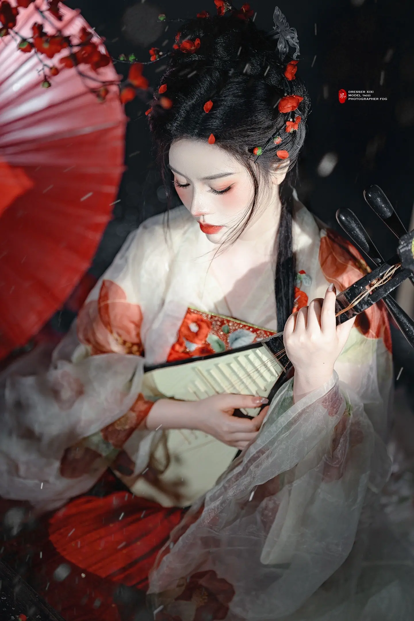 「青烟缠金钗,红裳融花影」。脑洞妆