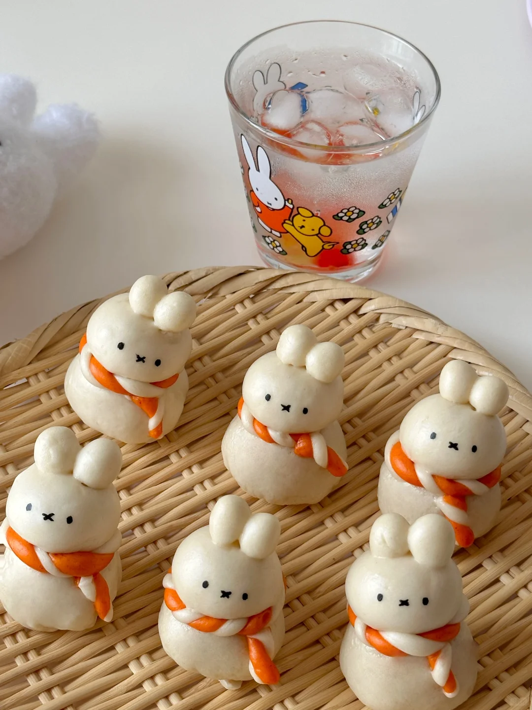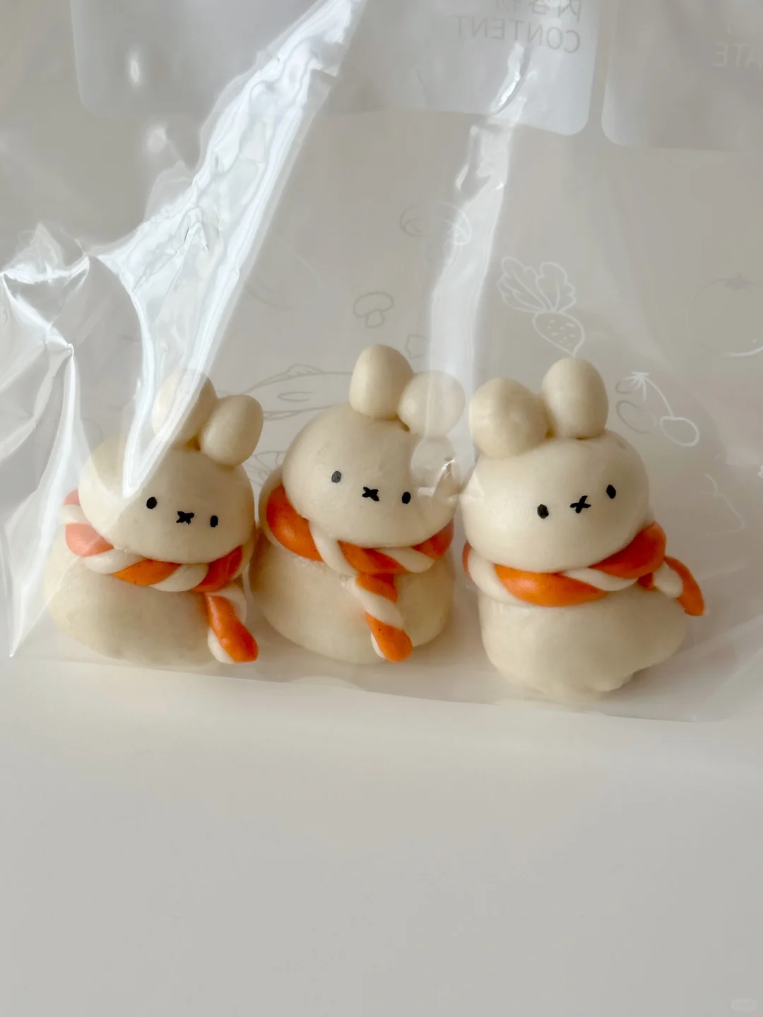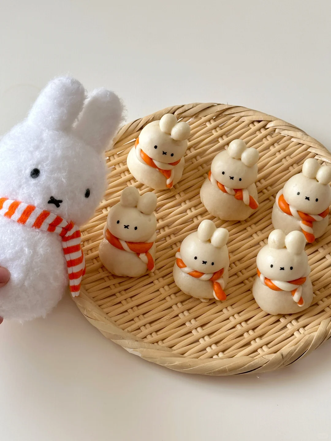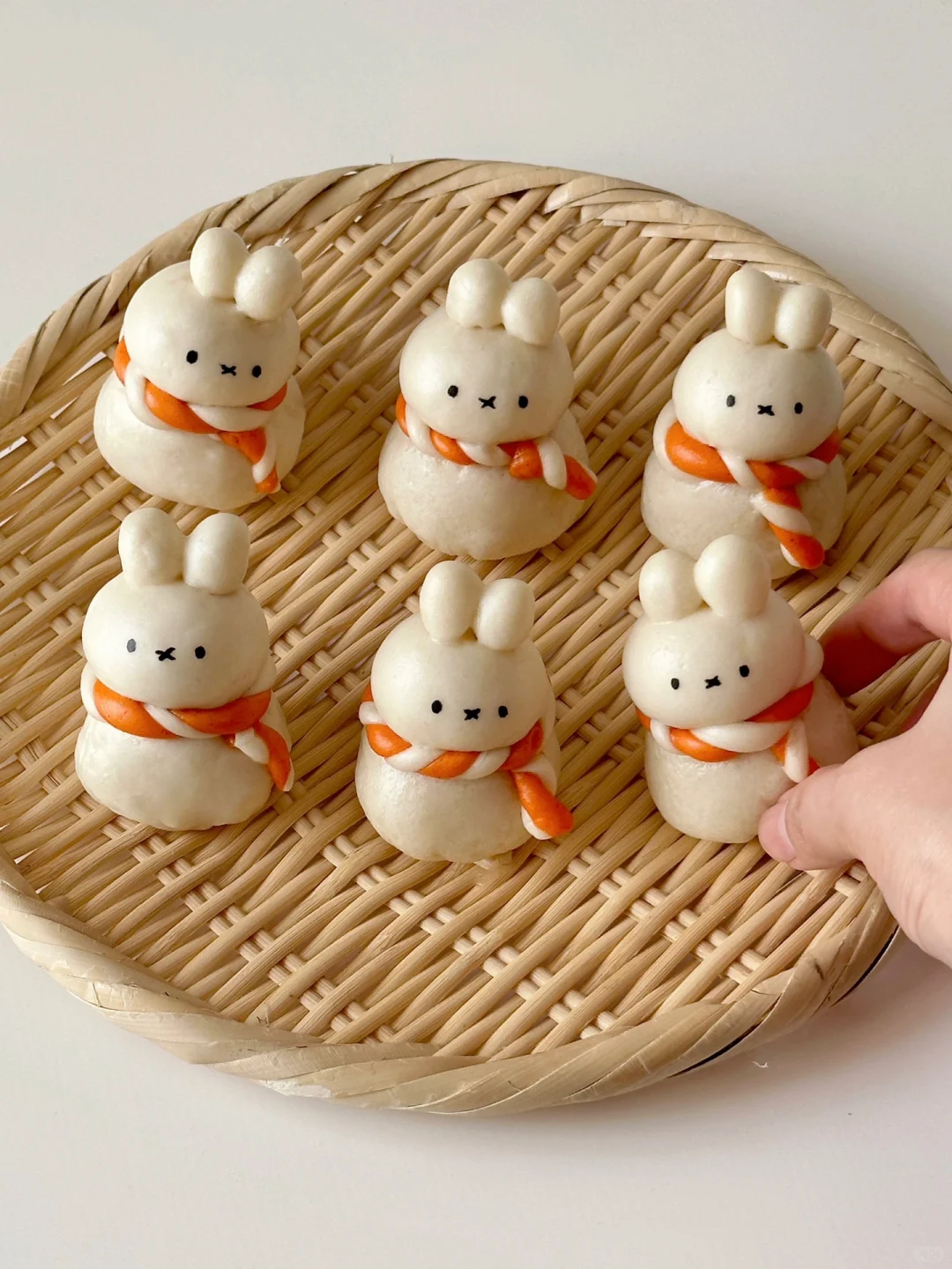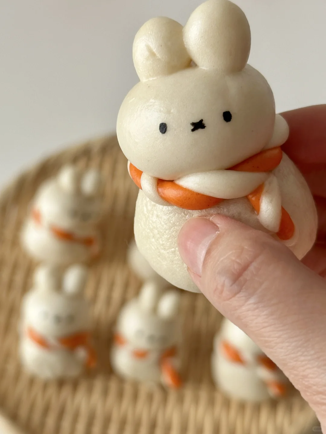 5️⃣按照身体10g,头8g,每只耳朵1g,组装米菲(身体,头耳朵用细细的干挂面连接,这样更加牢固,蒸制过程中面条也会变软变熟,方便实用~)