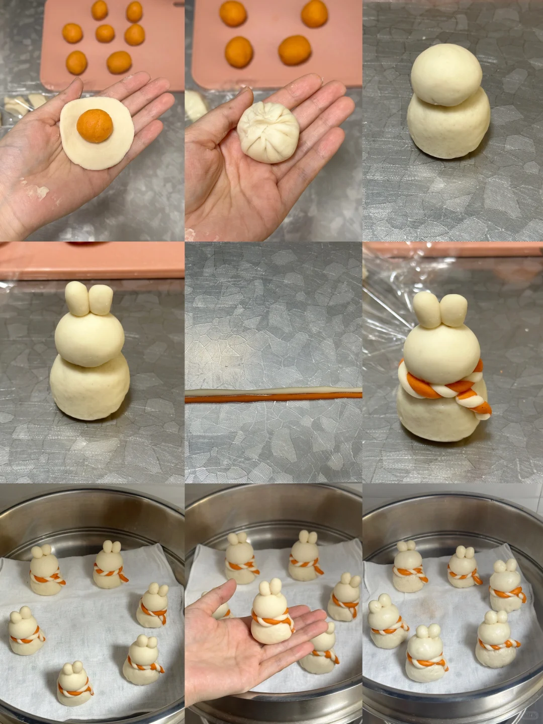 7️⃣上锅,水开上汽继续蒸6分钟,闷四分钟即可出锅8️⃣用可食用色素笔画出眼睛嘴巴