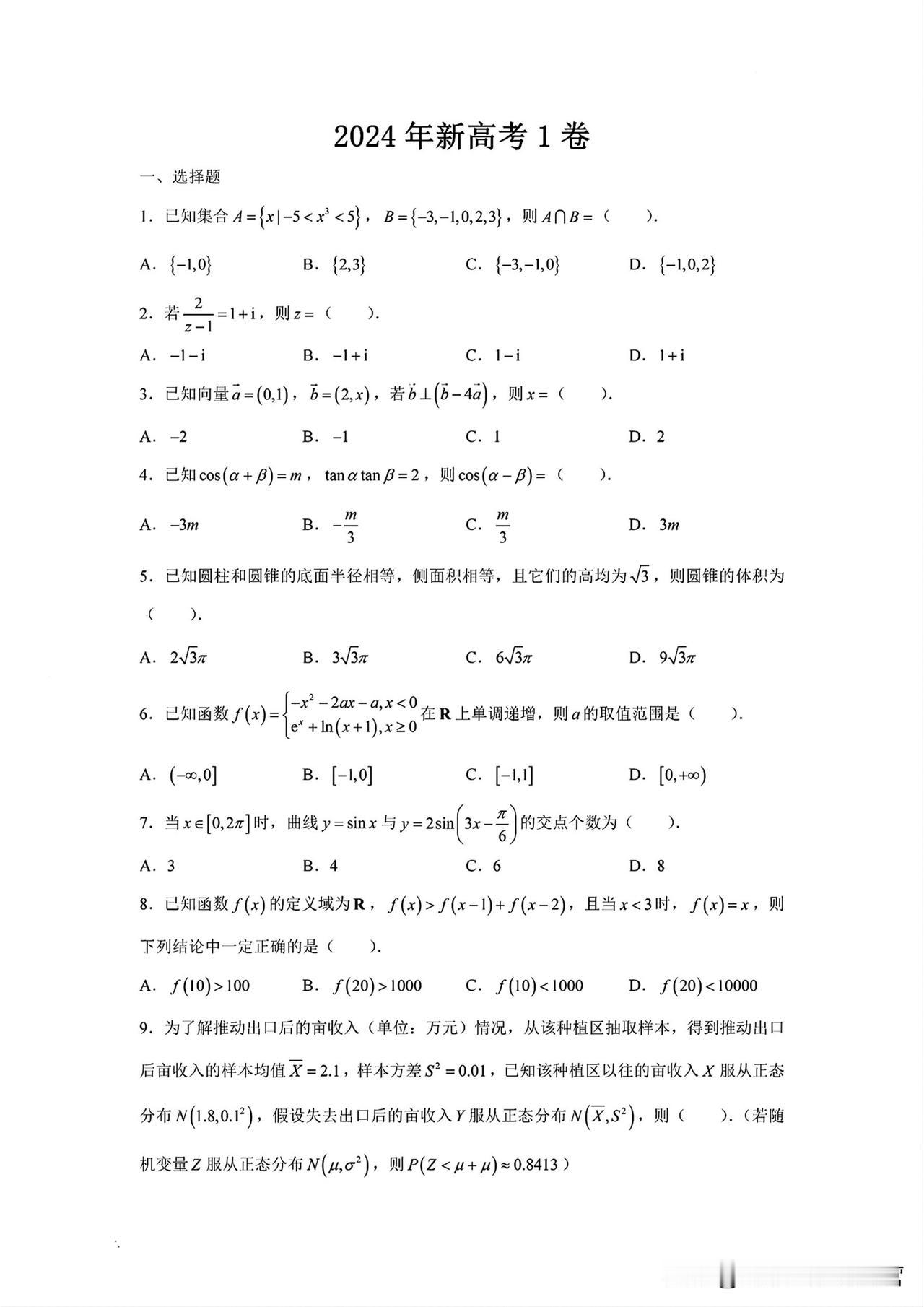 2024新高考1卷数学真题 解答题有没有让你意外呢?