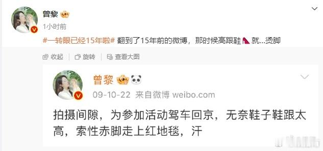 #曾黎15年前高跟鞋烫脚##曾黎15年前赤脚走红毯# 曾黎的这段往事真是让人忍俊不禁。15 年前高跟鞋烫脚的意外,让她大胆地选择赤脚走红毯,这份洒脱与率真令人佩服。如今回忆起来,更显她的可爱与真实。曾黎不仅有着令人惊艳的美貌,还有着如此有趣的灵魂,实在是魅力十足。期待她继续为我们带来更多精彩的故事和惊艳的瞬间。
