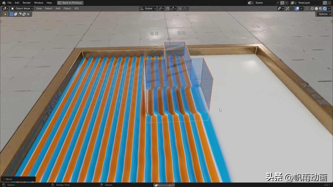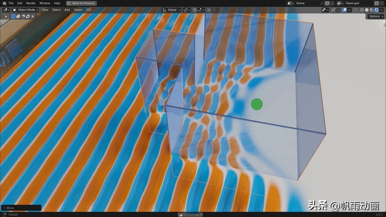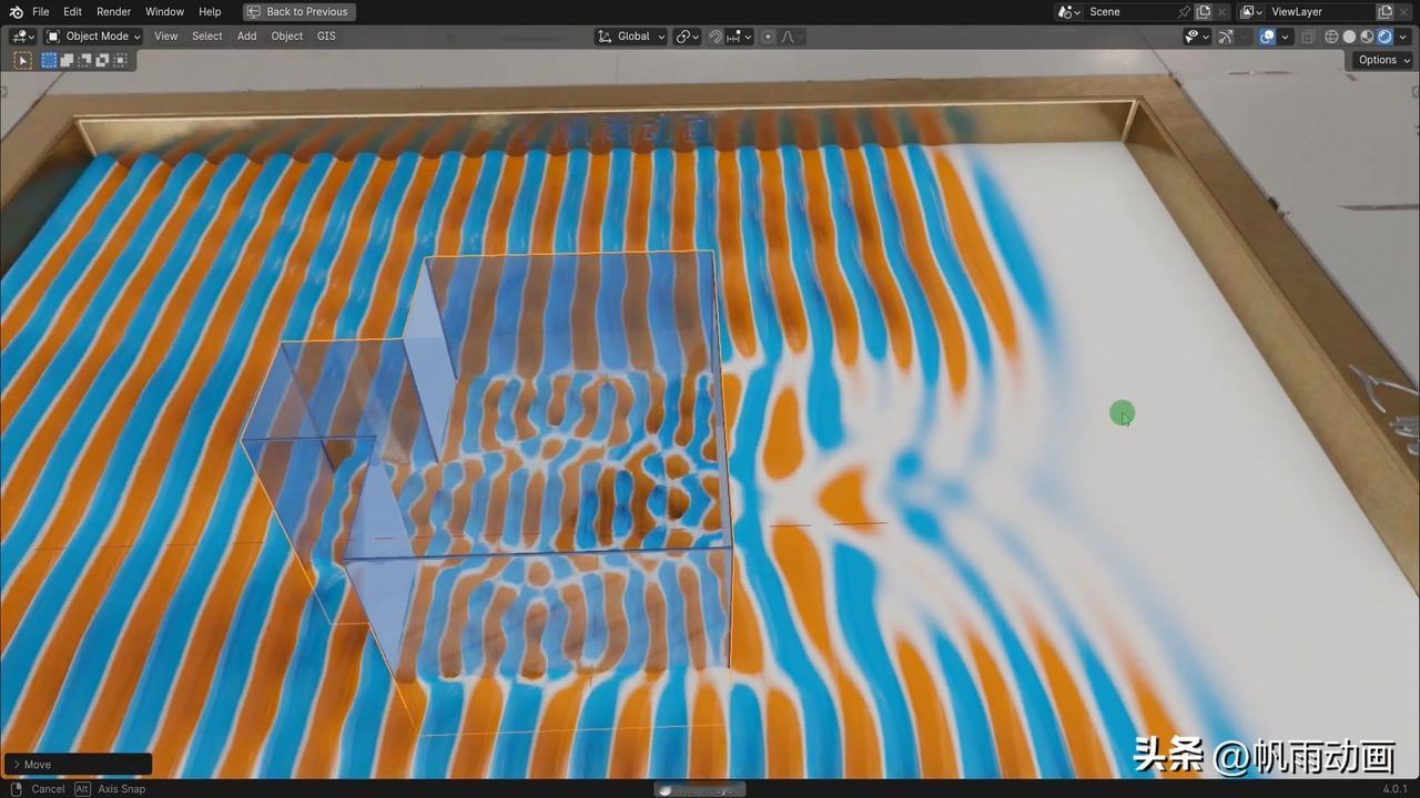 波穿过真凸透镜的样子。 这里的“真凸透镜”是开玩笑的说法,指的是一个“凸”字形的透镜。 附图中展示了波穿过它的样子。 蓝色代表波峰,橙色代表波谷。#光学#