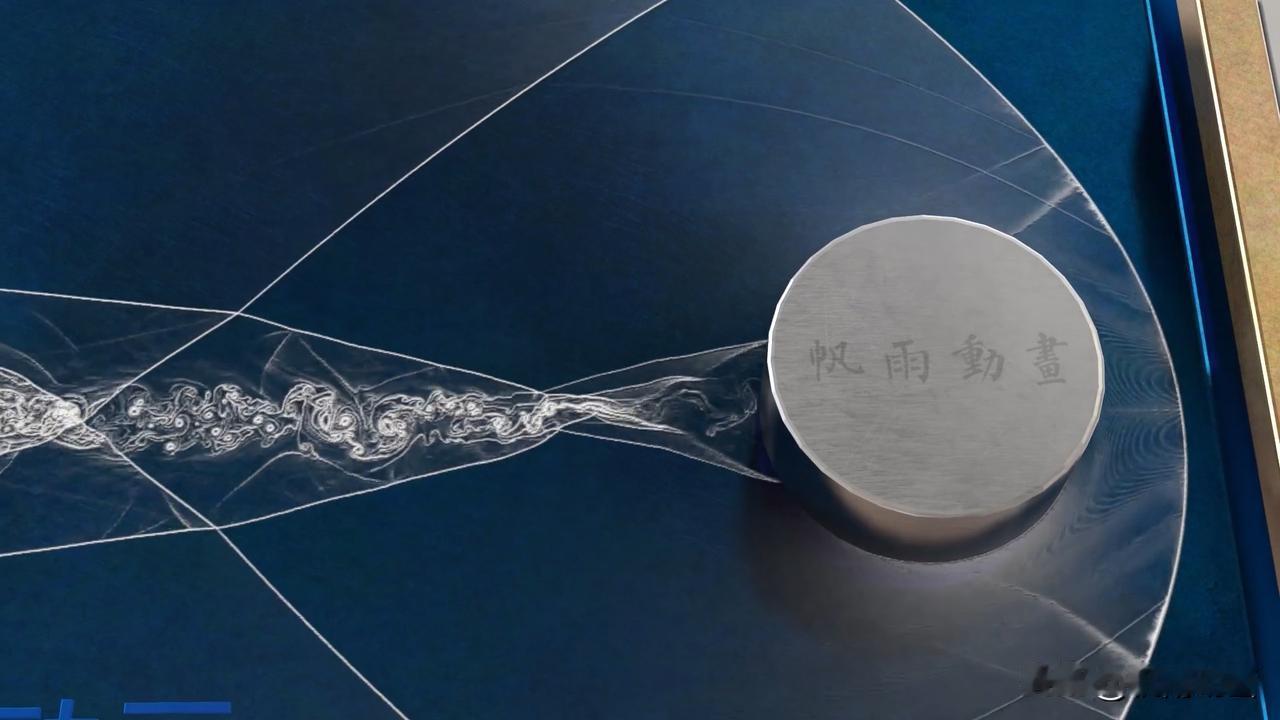超音速的柱子模拟 附图是一个柱子以3马赫的速度前进时的样子。 我们能看到柱子后面情形。 模拟区域的上下两边界是反射边界,会把波反射回来。#物理# 1分钟物理:中科院物理所趣味科普专栏第一辑+第二辑