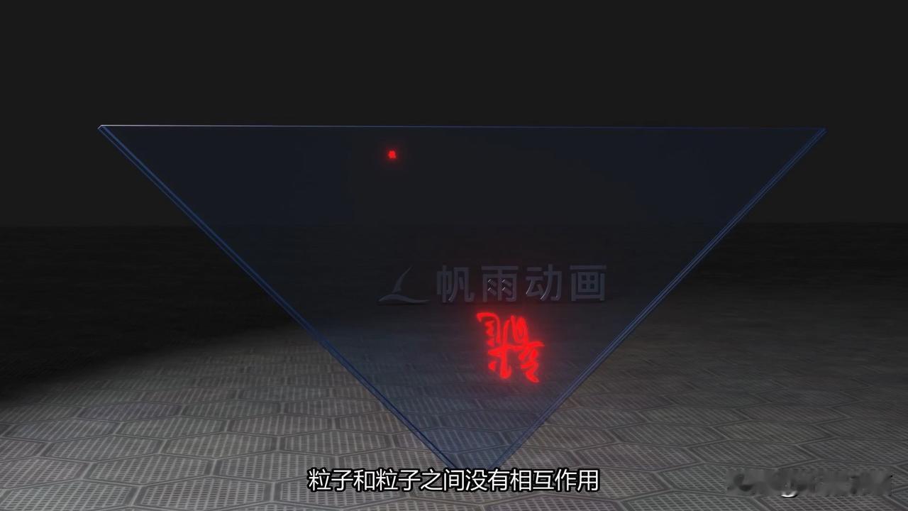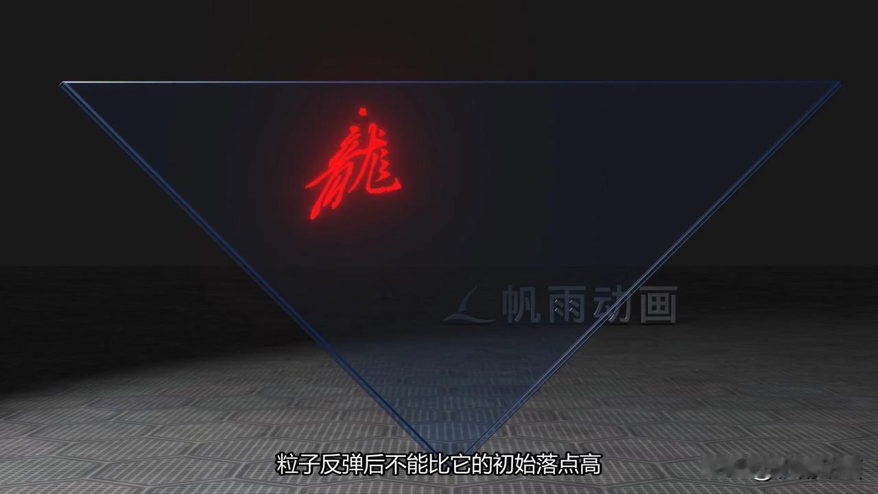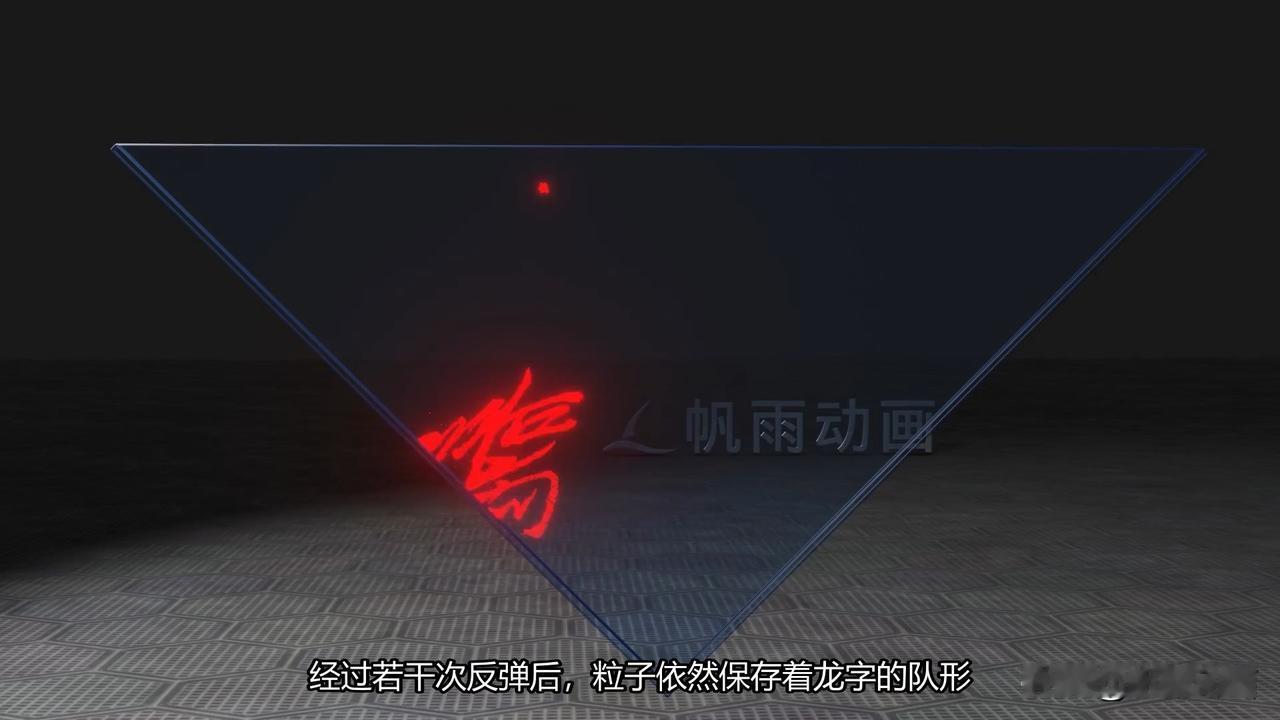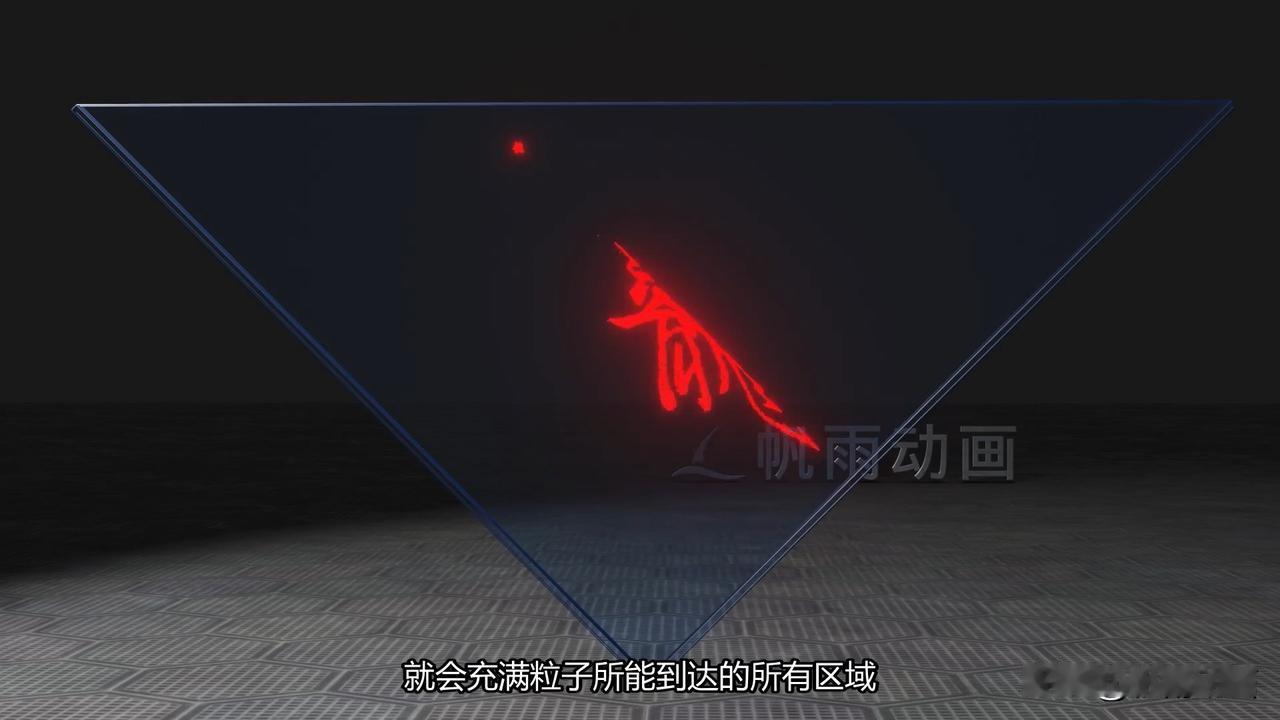 粒子在等腰直角三角形容器里的碰撞实验 等腰直角三角形的斜边与地面平行。 在容器里边有一百万个粒子,组成一个王羲之的龙字,在重力的作用下,它们自由下落。 碰到容器壁后会反弹,反弹的过程中没有能量损失。 粒子和粒子之间没有相互作用,可以认为是对每一个粒子单独做实验,然后合在一起显示。 由于是非混沌系统,经过若干次反弹后,粒子依然保存着龙字的队形,且龙字会越来越大。 又因为有能量守恒,粒子反弹后不能比它的初始落点高,当龙字变得更大的时候,就会充满粒子所能到达的所有区域,这些区域,看起来是一个矩形。#物理#